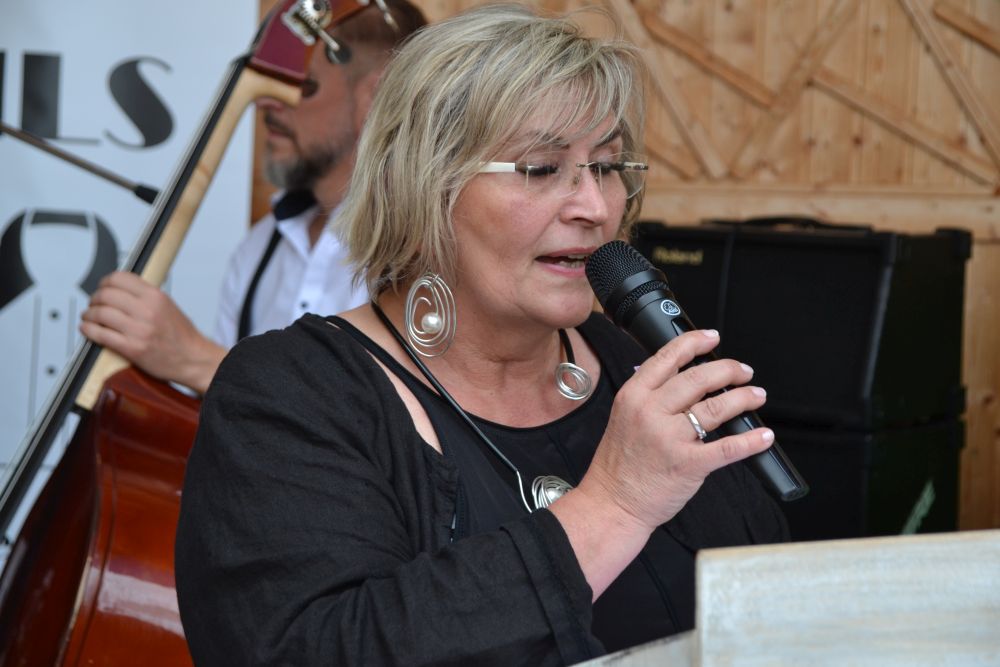 Kunstkreis-Vorsitzende Ines Kollmeyer Pause unter bunten Schirmen