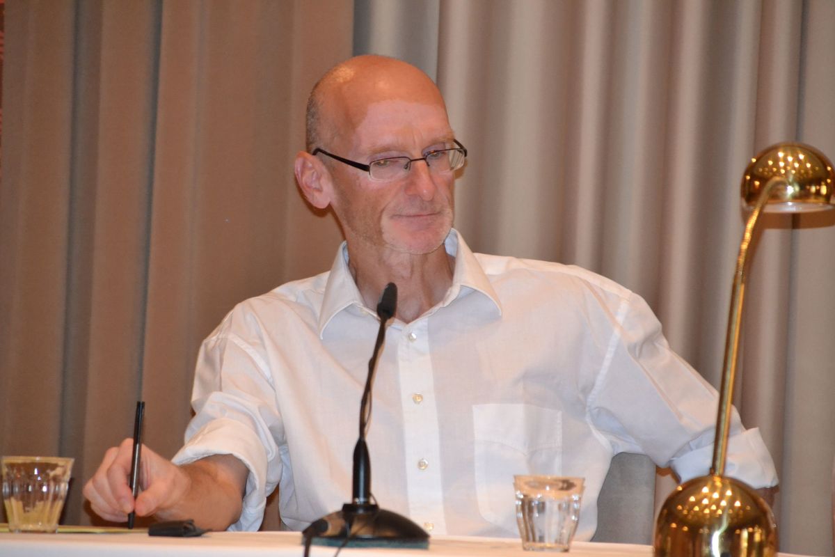 Seine Abschlusslesung im Festsaal des Rathauses lockte mit knapp 40 Gästen, überwiegend weiblichen, leider nur wenig Publikum. Doch alle hielten es bis zum Schluss der Veranstaltung aus, obwohl draußen der „Blutmond“, die totale Mondfinsternis angesagt war und das war ein Zeichen, dass Zemla es verstand, das Publikum zu fesseln, auch wenn sein Schreibstil mit vielen ineinander verschachtelten Sätzen und gelegentlichen Rückblenden viel Aufmerksamkeit erforderte.