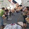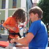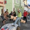 Statt der Kletterwand erlebten die Kinder heuer Bungee-Trampolin-Jumping (aus Augsburg von Karl Straub sen. extra geholt) - die spektakulärste Attraktion. Aber auch sehr beliebt waren die Neuheiten Bullriding und Highlander Games. Selbst zum Basketball-Werfen standen die Jugendlichen heuer Schlange - und sie treffen von Jahr zu Jahr besser. Das Bobbycar-Rennen am Pitzerberg gehört ebenso zu den Populär-Klassikern. Die Bilder sprechen für sich. Das Programm reichte vom Marienplatz bis zum San Marco - mit Nebenschauplätzen wie vor Eisenwaren Wallner. Wegen des Wirtefestes klappten das Sitzangebot für die Begleitungen und dieVerpflegung vorzüglich. Eine ideale Ergänzung.