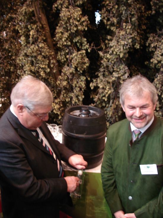 Sowohl der Minister, wie auch alle Besucher des Bieranstichs waren hellauf begeistert vom vollmundigen "Ministerbier" mit einer ganz besonderen Hopfennote.