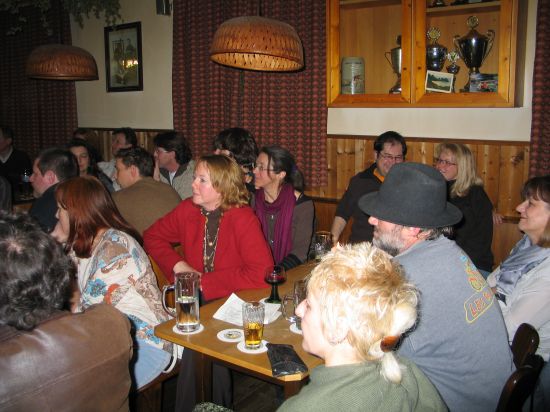 Eigentlich mutet dieser Abend wie ein Traum an. Nach den großen Auftritten der "Gunmen" und der neuen "Baker's Dozen" nun "der" Phil Vetter. Einfach so. Auf Eintritt spielend. Irgendwann wird es ein Erwachen geben und wir werden diesen Highlights beim Stilwirt nachtrauern, sie in die Hall of Fame emporheben - wenn wir sie nicht mehr haben. "Möbel" Krüger (Gitarre), "Mr. Sil" (Keyboard und Soundtechnik), Wompl (Drums) und Dan Halden (Bass) spielten ihrem "Chef" hervorragend und experimentierfreudig zu. Hervorragende, eingespielte Musiker. Und Phil Vetter - mit Hut - zieht sie an, gebraucht sie: Seine Vorbilder sind John Lennon und die Beatles, oder Bob Dylan. Von Ray Davies (Kinks) ist er gar geprägt, ohne dass er ihn kennt. Phil singt nur auf Englisch. Bis auf einen, waren alle Texte und Songs von ihm. Die Erklärungsversuche auf Deutsch vor jedem Song sind eher irreführend. Seine Songs brauchen eben den Text - und ein bisschen hintergründig ist er immer -, aber mehr als Melodieträger. Hier schließt sich der Bogen zum späten John Lennon. Vetters Gesang wird über die Soundtechnik Beatles-like, freilich ohne die Ohrwürmer, eher lyrisch. Phil Vetter hat eine ausgezeichnete Stimme, kann auf seine Gitarre stolz sein und die "Show" stimmt, weil sie ehrlich, echt ist. Nach einer Stunde hat er die Herzen erobert. Aber er spielt weiter, läuft zur Höchstform auf, findet in der Zugabe die Spitzentitel seiner neuesten CD.
