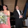Nach der Pause Arien aus der Oper "Bohème", der Operette "Gräfin Mariza" und "Wiener Blut" im Duett. Dazwischen ein neapolitanisches Canzone am Klavier. Dabei kam Lauren Francis immer besser in Stimme und zeigte Weltklasse. Franz Garlik war um den Anschluss bemüht und bewunderte seine Frau. Mit einer schweren Erkältung in den Tagen zuvor wäre beinahe sein Auftritt ausgefallen. So war Lauren Francis froh, dieses Konzert doch noch geben zu können. Sie bedankte sich bei ihrem Mann mit "Rosen aus Tirol" in der Zugabe und dem Bekenntnis "Hier ist meine zweite Heimat". Von Kulturreferent Alois Siegmund kamen Einführung und Blumen, für die Männer Hochprozentiges. Die anmutige Dekoration stellte "Rossini" zur Verfügung. Kommen Sie wieder, Lauren!