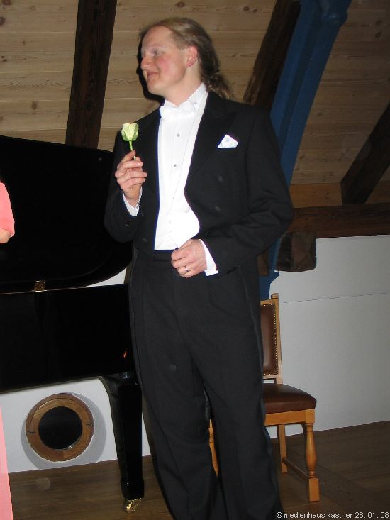 Im ersten Teil des Konzerts erfuhren die 120 Zuhörer - volles Haus - viel über Mozart. Arien aus "Königin der Nacht", der "Hochzeit des Figaro" und "Così fan tutte" zeigten, dass Mozart die besten Opern komponierte. Fagone, Repetitor an der Bayerischen Staatsoper, steuerte den 2. Satz des Klavierkonzerts KV 488 bei mit "Melodien vom Himmel".