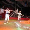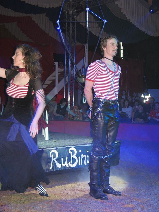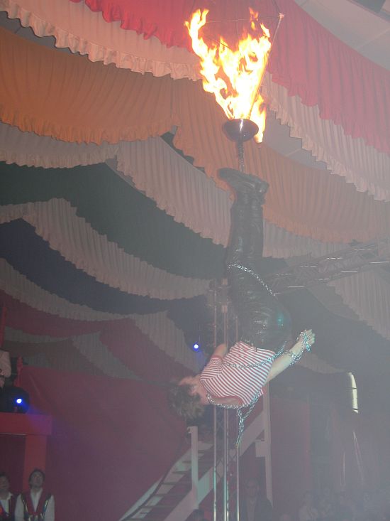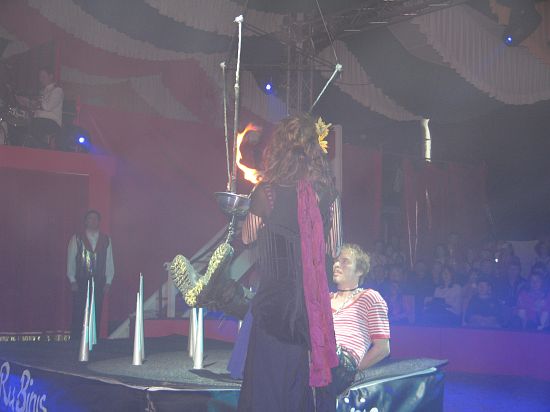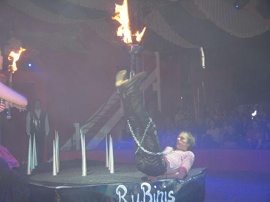 Das Blut zum Stocken brachten die Rubinis. An brennenden Seilen hängend schaffte es der Entfesselungskünstler im letzten Augenblick, die Ketten um seinen Körper zu lösen ...