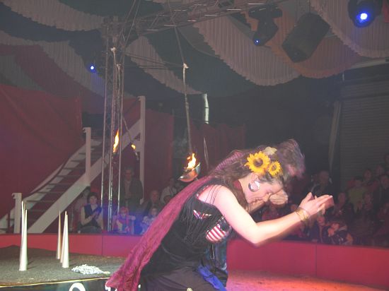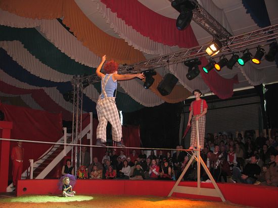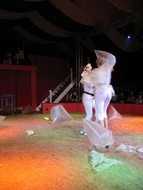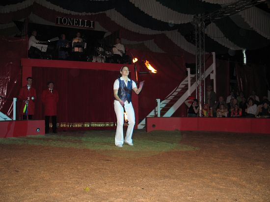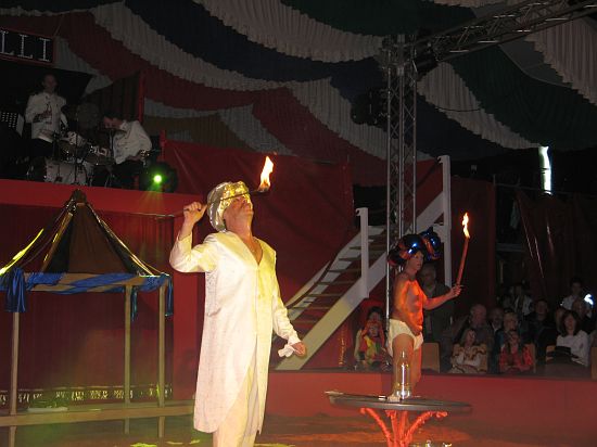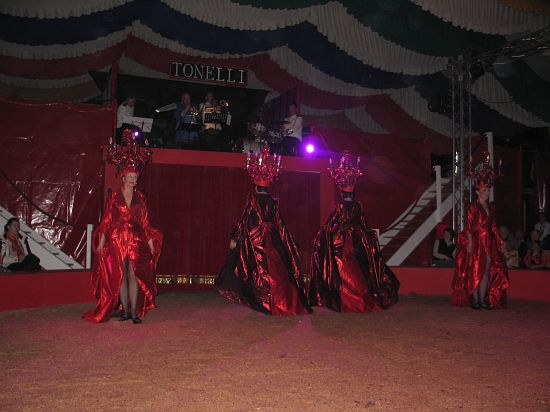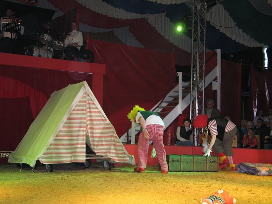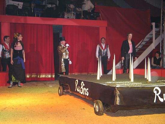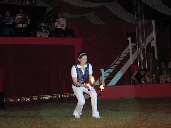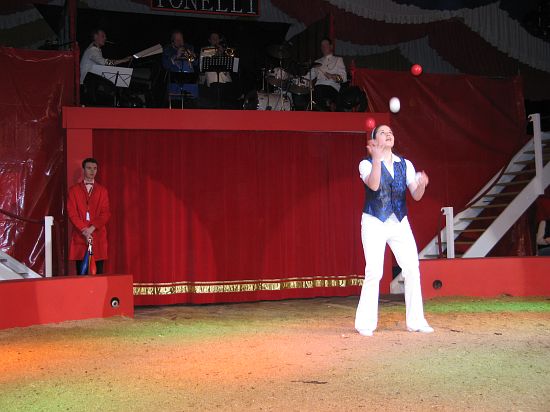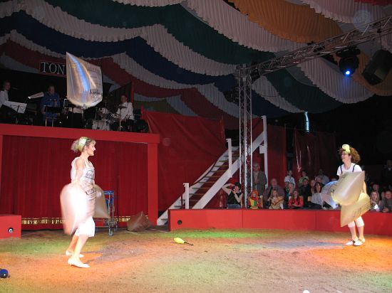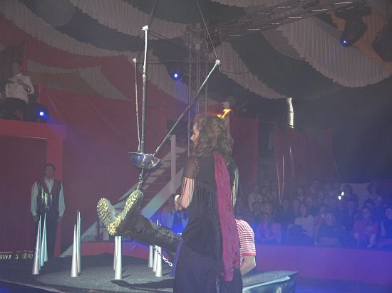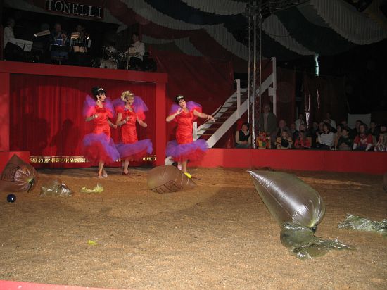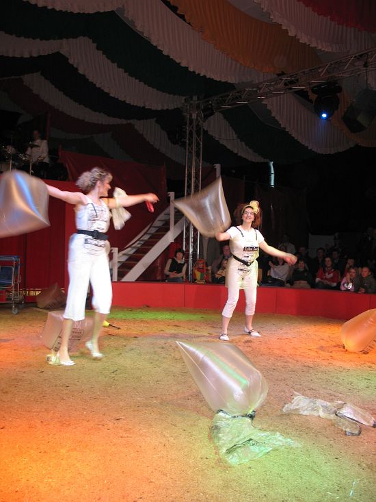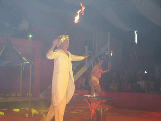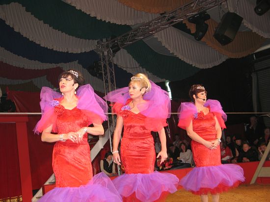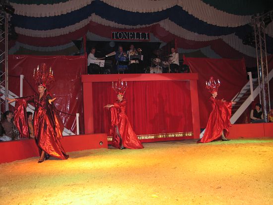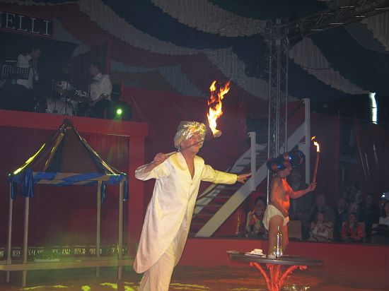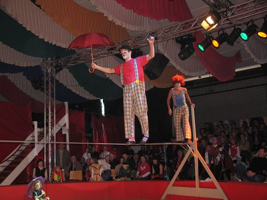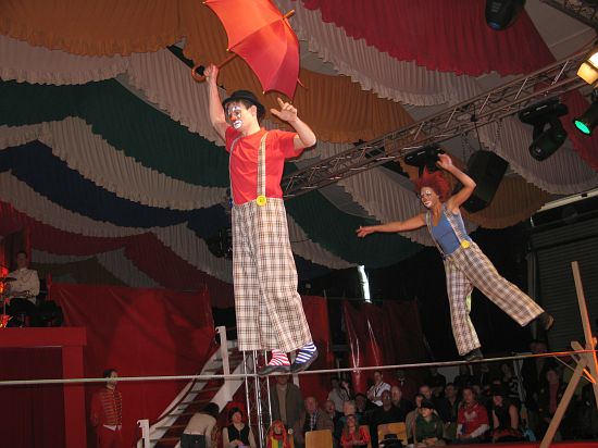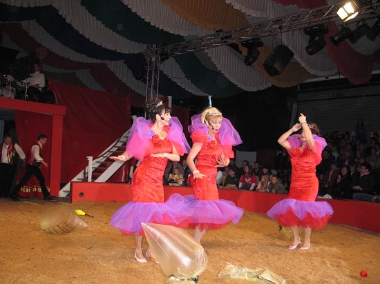 Ebenso elegant wie Max Niedermeier im schwarzen Schwalbenschwanz eroberte die internationale Artistenschar die Manege. Die Bambini erwiesen als Könige von Afrika dem König der Löwen die Ehre (eine Nummer mit neun verschiedenen Tieren!), und Las Tres Amerillis zeigten eine Jonglage, bei der nicht nur gelbe Säcke und graue Lappen das Licht in der Manege verblassen ließen. Eine "Nummer für die Augen" waren die Ladys in Red, die grazil die Manege über die neue und einzigartige Showtreppe betraten, und Los Combistas Furiosos feierten heuer Weltpremiere mit einer exorbitanten Seilnummer, bei der die Seile so schnell geschwungen wurden, dass den Augen der Zuschauer schwindlig wurde. Mit den Dschingis Kids wehte der heiße Wind aus der Mongolei durchs Zirkusrund, und Vroni und Vitus, die Clowns, zauberten eine große Nummer aus einem kleinen Zelt.