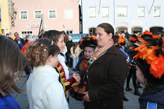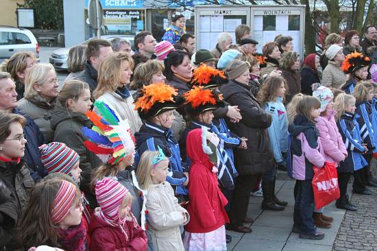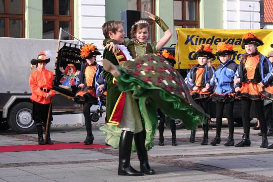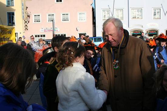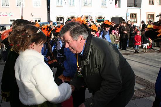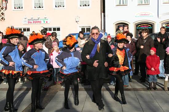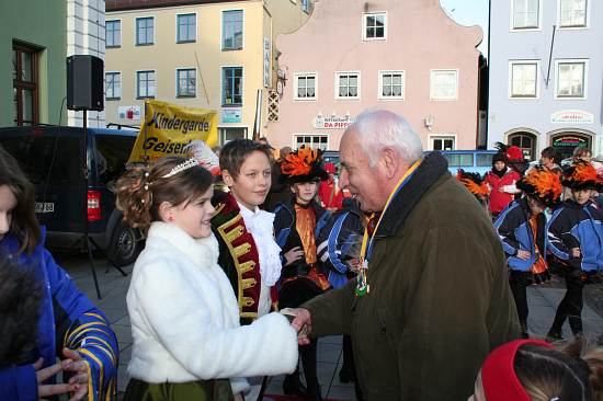 Bei herrlichem Sonnenschein und angenehmen Temperaturen traten die Bambinis und die Kindergarde der Geisenfelder Faschingsgesellschaft am Wolnzacher Rathausplatz auf. Toll, was die Kleinen alles einstudiert haben und wie selbstverständlich sie ihr Programm durchziehen. Die Kindergarde steht einer richtigen Garde in nichts nach und der Walzer von Judith I. und Tobias I. kann sich sehen lassen. Auch die Ansagen sind routiniert. Nach dem offiziellen Programm wurden noch viele Wolnzacher mit einem Orden bedacht, gerade wenn sie zu den Gardemädchen verwandt sind.