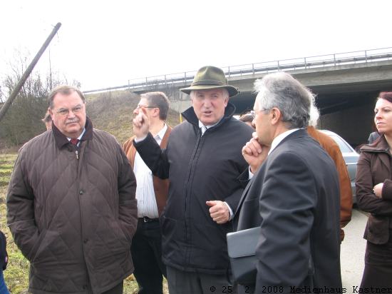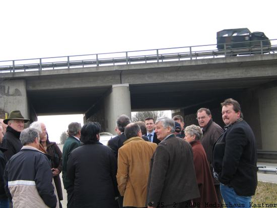 Ein Treffen mit dem verkehrspolitischen Sprecher der FDP, MdB Friedrich, sollte das Anliegen des Landkreises verstärken. Natürlich war der Lokaltermin vor dem Pfarrheim Walkersbach und anschließend an der Autobahnbrücke Bruckbach vom Wahlkampf geprägt: Die Anzahl der politischen Vertreter war größer als erwartet und die Hektik der Argumente überschlug sich. So bedurfte es einigen Schlichtungswillens seitens Bürgermeister Schäch, Landrat Rudi Engelhard und MdB Horst Friedrich, um das Ergebnis des Tages abzuschließen. MdB Friedrich erkundet weiter den politischen Willen für eine Autobahnausfahrt, zwischenzeitlich wird das Gutachten von Prof. Kutzak die Wichtigkeit belegen, erst dann werden technische Probleme relevant, wozu mehrere realisierbare Alternativen vorgelegt werden.