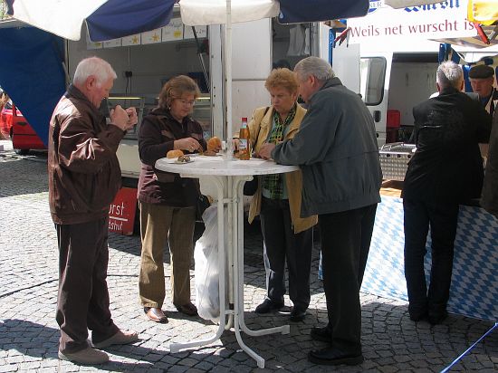 Mainburg, 20.4.08 (ce). Frühlingstemperaturen lockten zahlreiche Mainburger zum Eisenmarkt in die Innenstadt, die komplett abgesperrt war und den Ständen Platz bot. Bei Volksfeststimmung konnte eingekauft, gegessen und ausgiebig unterhalten werden. Zusätzlich hatten die Geschäfte geöffnet und erweiterten die Einkaufsmöglichkeiten
