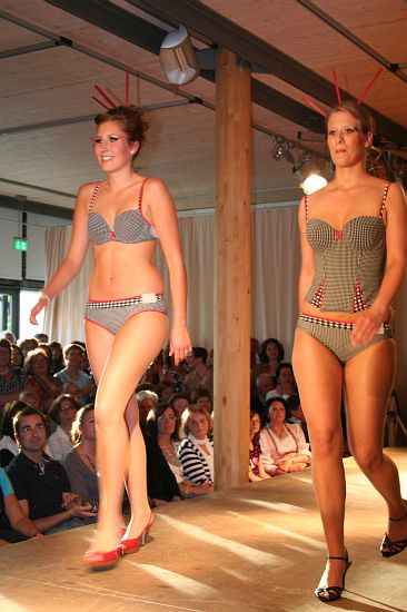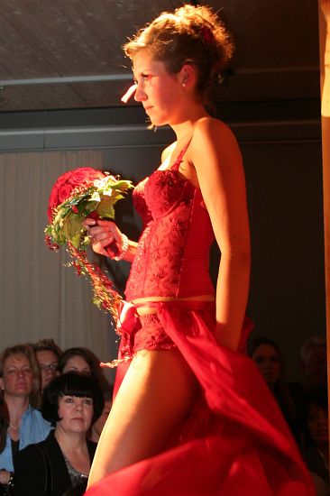 Wäscheträume Wolnzach (Inhaberin Irene Rabl) und Silk & Pearls (Inhaberin Beate Holzmair) präsentierten auf der Modenschau die ganze Bandbreite an Dirndln und Dessous. Selbst geschneiderte Damen- und Kinderdirndl, für die Herren Lederhosen in kurz und lang, ergänzt vom passenden "Darunter" wurden gezeigt. Mehr als 250 Gäste drängten sich im Veranstaltungsraum des Deutschen Hopfenmuseums. Obwohl die Models aus Wolnzach, Ingolstadt und München keine Profis waren, zeigten sie ihr Können auf beeindruckende Weise. Wie auf jeder Modenschau war auch in Wolnzach das Brautkleid der Höhepunkt, hier in Form eines romantischen Hochzeitsdirndls, ergänzt von den passenden Dessous, die alle Zuschauer ins Schwärmen brachten. Die Lust auf Dirndl und Dessous wurde bei den Zuschauern auf dieser stimmungsvollen Modenschau sofort geweckt. Bei dieser Modenschau stimmte einfach alles, Produkte, Musik, Models, Beleuchtung uns so war sie auf jeden Fall ein Highlight, darin waren sich die zahlreichen Gäste einig.