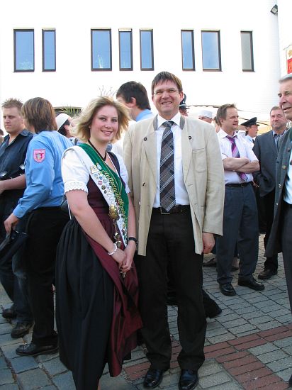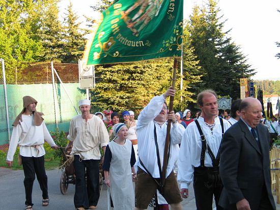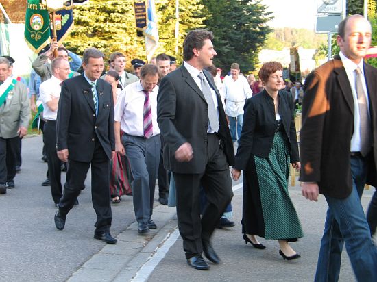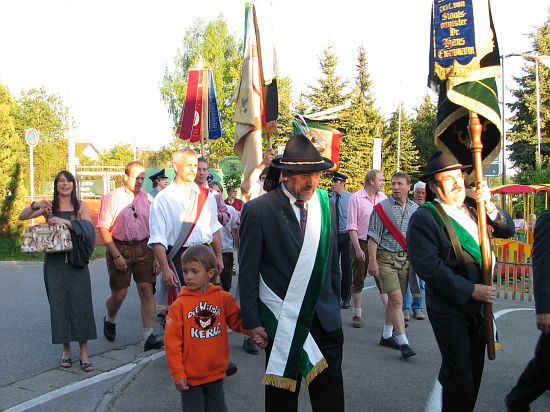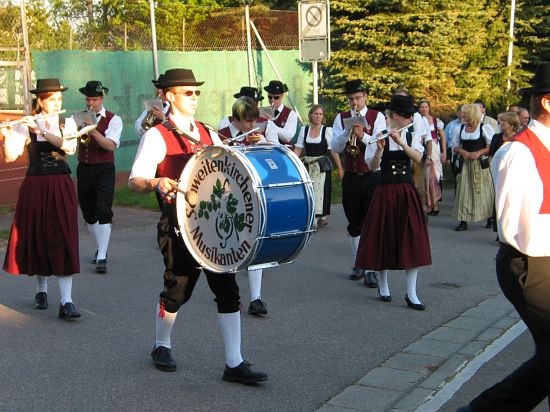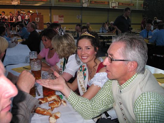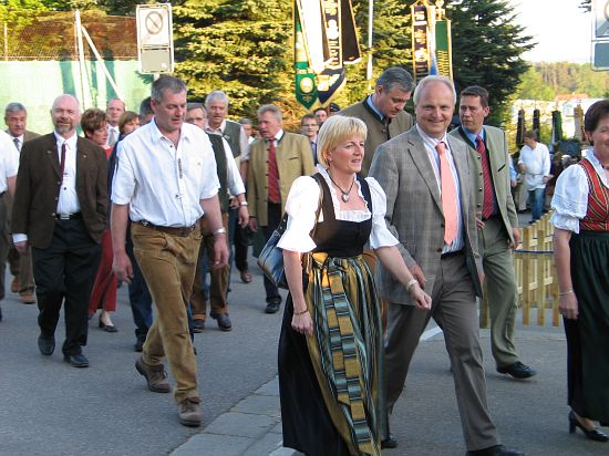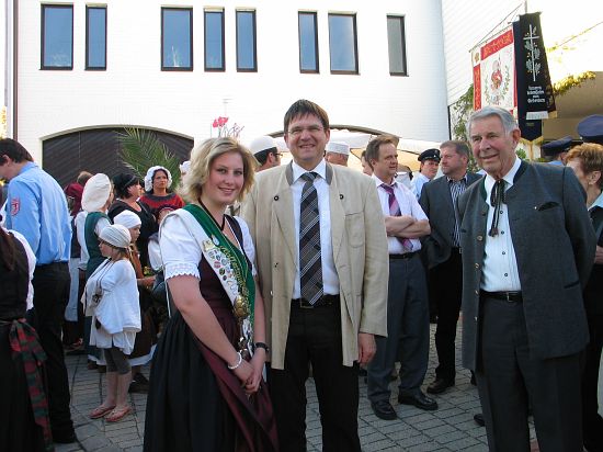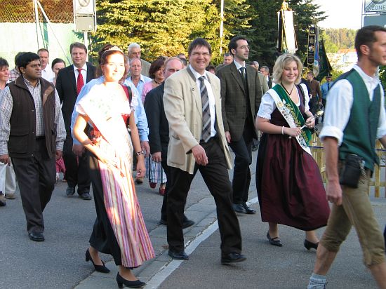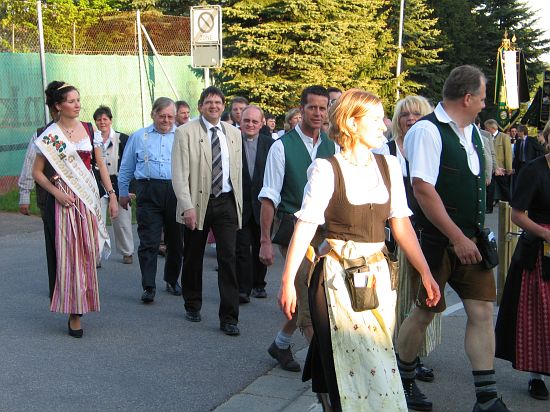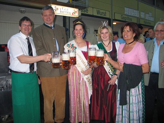 Bessere Startbedingungen kann man sich kaum wünschen: Mit der Gewissheit, dass das Wetter unter Hochdruckeinfluss Bestand haben wird, konnten sich die Schweitenkirchener diesmal in aller Ruhe auf den festlichen Höhepunkt des Jahres vorbereiten. Nur zu gut erinnerten sich Musikanten und Zuschauer an den Volksfestauftakt im Vorjahr, als ein Platzregen das Standkonzert immer wieder unterbrach. Doch heuer gibt es nichts anderes als Sonnenschein zum 41. Schweitenkirchener Volksfest. Es wurde traditionell am Freitagabend vor dem Rathaus mit dem Standkonzert der Schweitenkirchener Musikanten und Freibierausschank begonnen. Anschließend folgte der Auszug der Ehrengäste mit Festwirt, Bedienungen und den Vereinen zur Gemeindehalle. Bei dieser Gelegenheit hatten die Zuschauer erstmals Gelegenheit, die Sünzhausener Dorfgemeinschaft in ihren historischen Kostümen zu bewundern (der Ortsteil feiert im Juli 1200jähriges Bestehen). Mit wenigen Schlägen zapfte 1. Bürgermeister Albert Vogler das Bierfass an und eröffnete offiziell das Volksfest. Spaß, Kurzweil, Musik und beste Stimmung beherrschen auch die nächsten Tage beim Volksfest in der Gemeindehalle und im Vergnügungspark. Ehrengast und Redner der politischen Großkundgebung am Pfingstmontag war Siegfried Schneider (CSU), Bayerischer Staatsminister für Unterricht und Kultus.