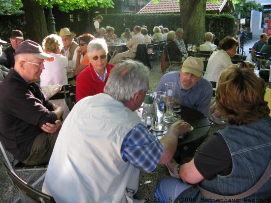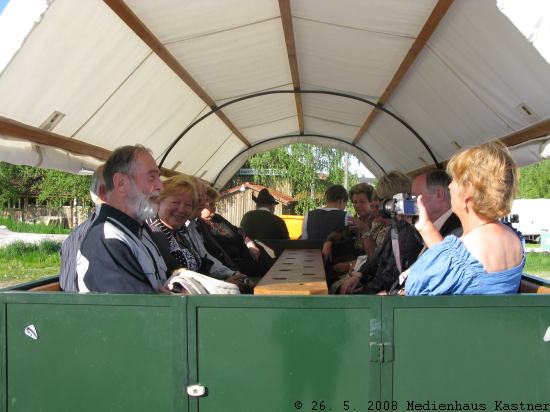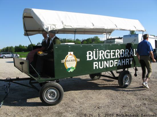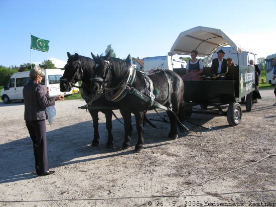 (sms) Es passte einfach alles: Das "Papstwetter", die hervorragenden Bands, die jeden Abend auftraten, die freundlichen und sehr bemühten Gastwirte, die typisch bayerische Spezialitäten servierten, das Deutsche Hopfenmuseum als Veranstaltungszentrum, die Hopfenkultur, die Brauereien und Biergärten. Ein Tourismuskonzept für die Hallertau wurde erfolgreich praktiziert und die Gäste waren begeistert. Die EMHCler wollen wieder nach Wolnzach. Als besonderes Highlight fuhr ein Pferdefuhrwerk die Gäste vom Stellplatz an der Wendenstraße (Feststadel) am Sonntagabend zum Hopfenmuseum, zum Festabend. Diese Fahrten waren ein Geschenk des Marktes und des Landkreises an die Gäste aus ganz Deutschland. Bürgermeister Jens Machold widmete ihnen eine erste öffentliche Rede - sehr süffisant gehalten. Sie kam bestens an. Und die Hopfenköniginnen klatschten.