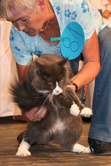 Die attraktive Ragdoll mit ihrem seidigen halblangen Flor wurden gezeigt und die verwegen aussehende norwegische Waldkatze, die den Umzug vom Wald ins Wohnzimmer mit der Nonchalance vollzog, die Katzen zu Eigen ist. Die Besucher konnten sich überraschen lassen von den vielen Varietäten der großen Palette der selteneren Rassen und Farbnuancen, die den Reiz jeder Katzen-Ausstellung ausmachen.