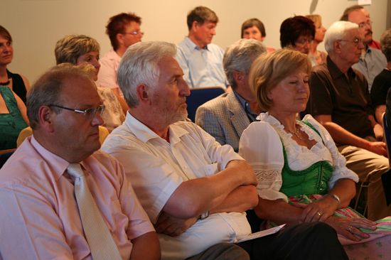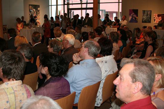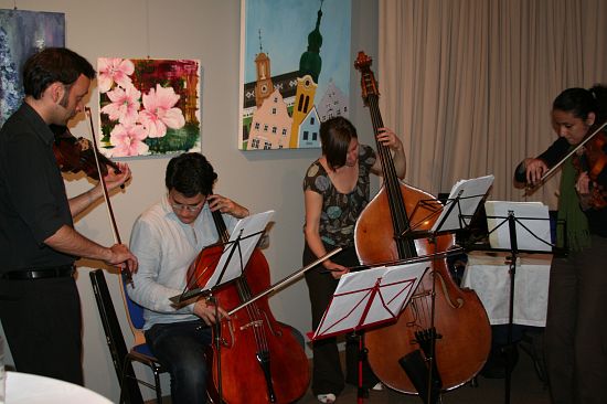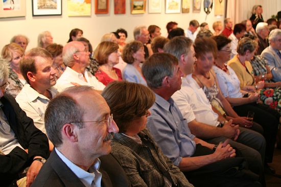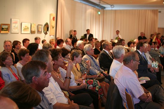 Der Kunst- und Hobbykreis Wolnzach lud zu seinem 25-jährigen Jubiläum ein und zahlreiche Gäste aus nah und fern folgten der Einladung nach Wolnzach gern, darunter unter anderem auch Bürgermeister Jens Machold mit seinen beiden Stellvertretern, Landrat Schäch mit Gattin, Altlandrat Rudi Engelhard sowie die Landtagsabgeordneten Erika Görlitz und Max Weichenrieder. Der Veranstaltungsraum im Hopfenmuseum war mit Bildern des Kunst- und Hobbykreises dekoriert. Bei sommerlichen Temperaturen konnte der Sektempfang zu Beginn draußen an den Stehtischen stattfinden, bevor die erste Vorstandsvorsitzende Gisela Brandl-Giesel die Begrüßungsrede hielt. Laudator Peter Nowotny blickte dann auf die 25-jährige Vereinsgeschichte zurück, an die sich die zahlreichen anwesenden Gründungsmitglieder noch gut erinnerten. Der gelungene Abend wurde abgerundet von einem Buffet, untermalt vom jungen Streichquartett Jaad.