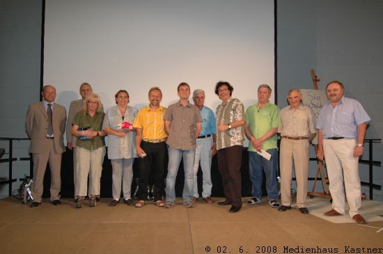 Das Beste kam aber ganz zum Schluss. Der Kölner überraschte mit hervorragenden Kenntnissen der lokalen Geografie und zog so Rohrbach, Geisenfeld und den Rest der Hallertau durch den Kakao. Mit seiner persönlichen Hommage an die Hallertau, der sogenannten "Hallertau-Hymne" vollbrachte Brüske ein wahres Meisterstück. Mit Textpassagen wie "Fahr Ingolstadt Richtung Süd, da gibt's bewohntes Gebiet. Wer hat noch Kraft, wer hat noch Power - der Hallertauer!" löste Brüske tosenden Applaus und Lachsalven aus. Auf Bitten von Gerling wiederholte Brüske seine "Ode an das Geschäftsgebiet der Hallertauer Volksbank" nochmals, bevor er als "Glücksfee" acht Gäste mit Preisen wie Navigationssysteme, Handys oder ipods im Rahmen einer Saalverlosung glücklich machen konnte.