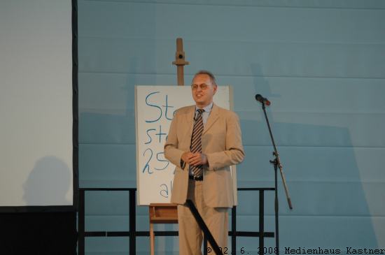 Mit satirischen Wortwitzen, über das Verhältnis der Deutschen zum Thema Geld, eröffnete Brüske sein Programm, bevor er mit einem Lied zur Steuerentwicklung in Zeiten der Großen Koalition zur offiziellen Begrüßung durch Gerling überleitete. "Was kommt mit der neuen Abgeltungssteuer auf unsere Anleger zu? Wie bereitet man sich am besten auf die neue Steuersituation vor?", waren Fragen, die Gerling in den Raum warf. Im Wechselspiel mit Brüske ging Jochen Matthes, Investment-Spezialist der Union Investment, in seinen Vorträgen auf diese Fragen ein und brachte Licht in die dunklen Ecken der Abgeltungssteuer. "Wer jetzt handelt, hat noch etwas Zeit für eine abgeltungssteueroptimierte Gestaltung seiner Anlagestrategie" erklärte Matthes und stellte den Gästen auch gleich passende Lösungen vor. Der Gastredner verdeutlichte die neuen steuerlichen Bedinungen: "25% auf alles! So könnte man die Abgeltungssteuer in der Kurzform beschreiben. Ab 1. Januar 2009 werden alle Einkünfte aus Kapitalvermögen, also Zinsen, Dividenden und Veräußerungsgewinne, unabhängig vom persönlichen Einkommenssteuersatz einheitlich mit 25% besteuert. Lediglich innerhalb der bereits bekannten Freigrenzen bleiben diese Einkünfte auch künftig steuerfrei. Zusätzlich erhöhen der Solidaritätszuschlag und die Kirchensteuer die Steuerschuld." Die Abgeltungssteuer soll einer der ersten Schritte zu einer Vereinfachung des Steuergesetzes sein. Zusammengefasst war Matthes' Empfehlung an die Gäste, jetzt die Geldanlagen bereits auf die künftigen Rahmenbedingungen umzustellen, um steuerliche Belastungen zu vermeiden oder zumindest in erster Zeit zu umgehen. "Wer's schlau macht, kann von der neuen Steuer sogar profitieren", so Matthes.