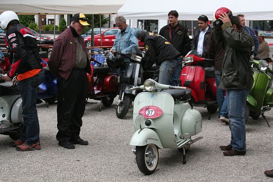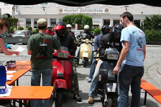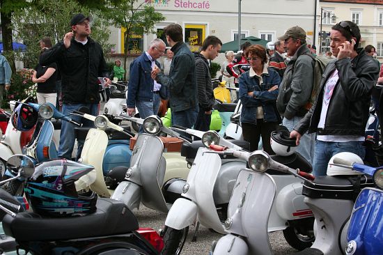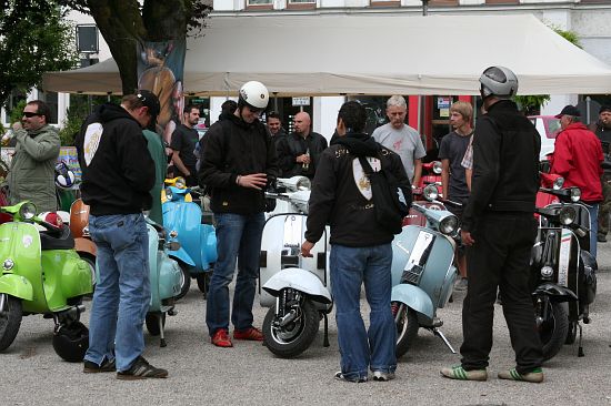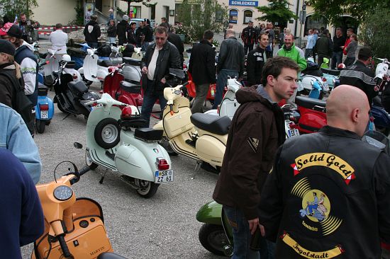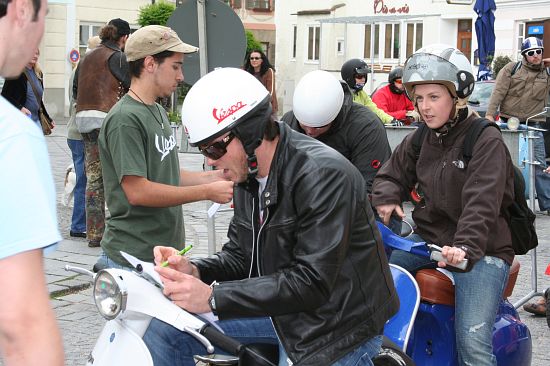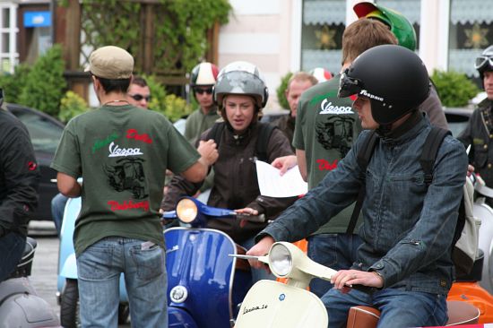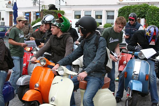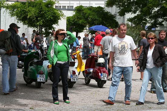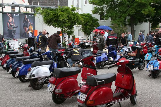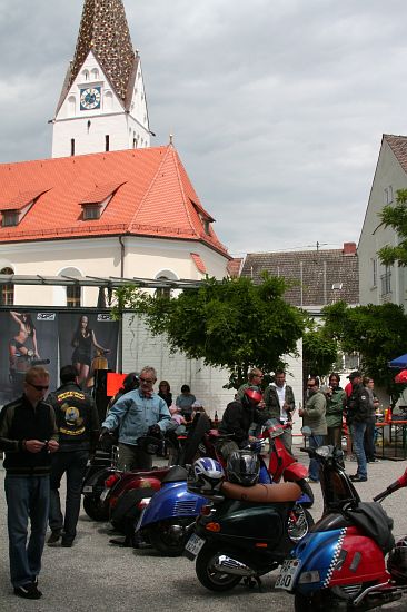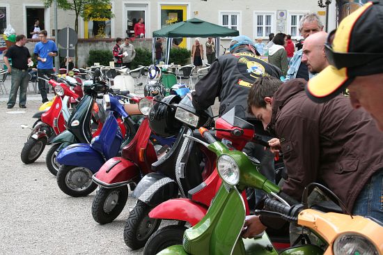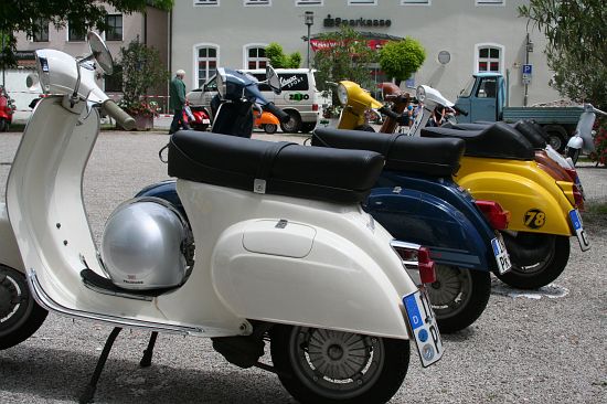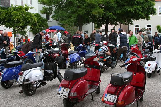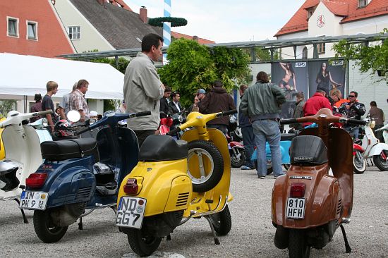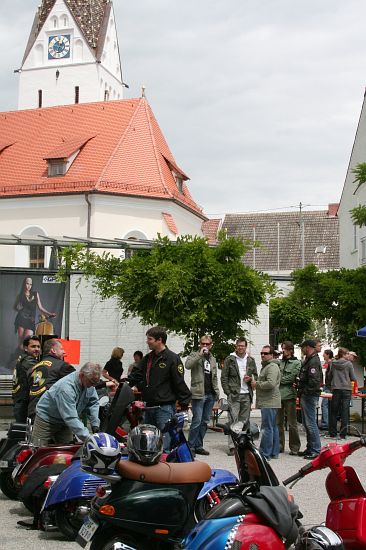 Schon zum fünften Mal veranstalteten die "Amici della Vespa" ihr traditionelles Vespa-Treffen. Mehr als 100 Vespa-Freunde aus nah und fern versammelten sich ab 12.00 Uhr am Vohburger Stadtplatz. Von Straubing über Regensburg bis Ingolstadt reisten die Vespafans an, viele kamen natürlich auch aus dem Landkreis Pfaffenhofen. Zunächst stärkten sich alle vor der schönen Rathauskulisse bei Bratwurst- und Steaksemmeln und bewunderten gegenseitig die chromblinkenden und liebevoll herausgeputzten Vespas. Wahre Schmuckstücke aus den 60er und 70er Jahren waren dabei, sogar eine Vespa von 1961 wurde gesichtet. Gegen 14.30 starteten die Vespa-Freunde zu einer 32 km langen Rundfahrt um Vohburg herum, die alle in rund 45 Minuten unbeschadet und gut gelaunt überstanden. Zum Glück spielte auch das Wetter mit, sogar die Sonne blinzelte gelegentlich aus den Wolken hervor. Peppone hätte an diesem Tag seine helle Freude an den Vohburgern gehabt!