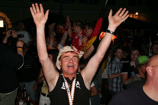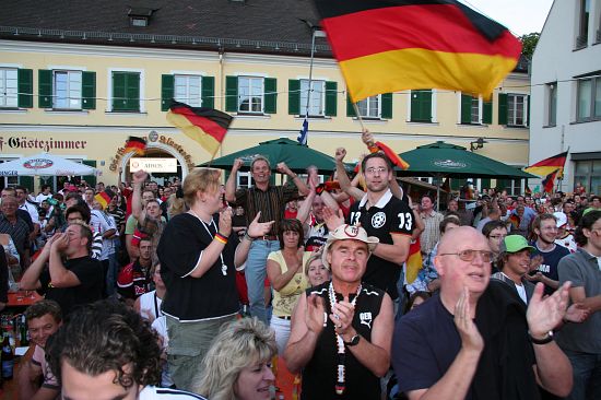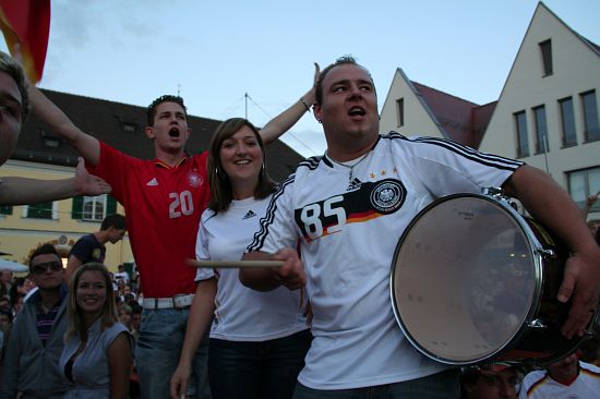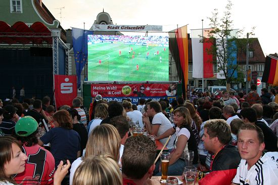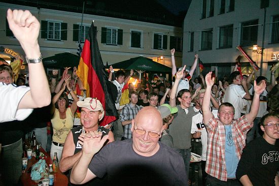 Rund 1000 begeisterte Fans hatten sich bei bestem Wetter auf dem Geisenfelder Hauptplatz zum Public Viewing eingefunden. Dort feierten sie den Sieg fröhlich und ausgelassen. Auch das Wolnzacher Tandem war als Fußballtempel bis zum letzten Platz gefüllt. Die Fans verwandelten nach dem Sieg die Preysingstraße kurzerhand in ein bengalisches Feuer und feierten auch hier genüsslich.