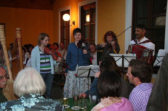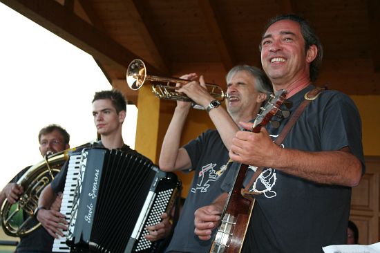 Die Auer Geigenmusi und die Schweizer NeverGoHome Street Band luden zum musikalischen Sommerabend in das Holledauer Wirtshaus nach Osseltshausen. Bei lauen Sommertemperaturen fand die Veranstaltung auf der Terasse des Siebler Wirtes statt. Den Rahmen boten die Europa-Tage der Musik, die Freude an der Musik und die mitmenschliche Verbundenheit fördern wollen. Dicht gedrängt lauschten die Gäste einem hervorragenden Programm. Neben Gemeinderäten aus Wolnzach wurden auch der Auer Bürgermeister Karl Ecker gesichtet, der es sich trotz Terminstress nicht nehmen ließ, kurz vorbeizuschauen.