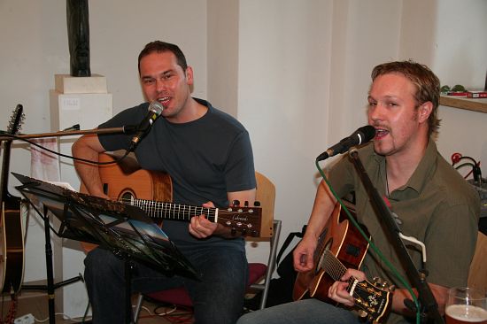Flo Märten und Daniel Safr gestalteten den musikalischen Rahmen des Abends mit Gesang und Gitarre. Wieder eine gelungene Ausstellung.