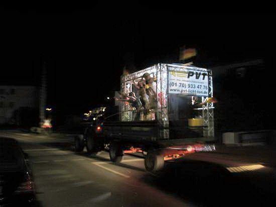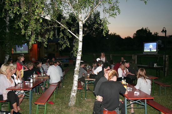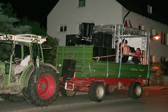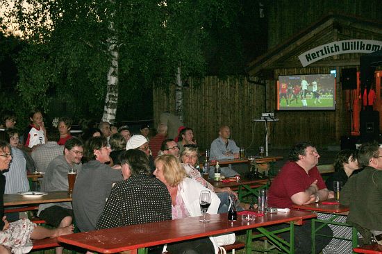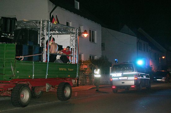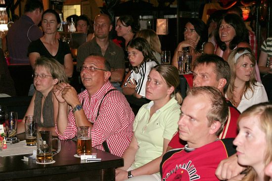 (Wolnzach, 29.6.2008; hpb). Zahlreiche Fußballfans fanden sich auch zum Finalspiel der Fußball-Europameisterschaft im „Tandem“ ein. Gut gelaunt, mit Fahnen und Deutschland-Trikots verfolgten sie angespannt das zuerst hochspannende, doch hinterher eindeutig für Spanien endende EM-Finale. Man war sich einig: Spanien ist verdienter Europameister. Das hielt die Wolnzacher Fans nicht davon ab, nach dem Endspiel einen kleinen Autokorso zu veranstalten mit einem Disco-Wagen (siehe Foto), der jedoch nach kurzer Zeit von der Polizei beendet wurde.