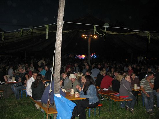 Mainburg, 4.7.08 (ted). Das Wetter spielte bestens mit, auch wenn es noch etwas frisch am Abend wurde. Der Andrang auf dem Gelände hinter dem Braas-Werk Unterempfenbach war stark. Zeitweise standen die Besucher in 50 Meter langen Reihen vor den Kassen. Jeder bekommt seinen Bierkrug – jedes Jahr neu gestaltet. Eine Füllung mit Ziegler-Bier kostet nur 2 Euro. Alles läuft in Selbstbedienung. Das ganze Dorf steht hinter den Theken, schenkt aus, bäckt Pizzen, brät Würstel etc.