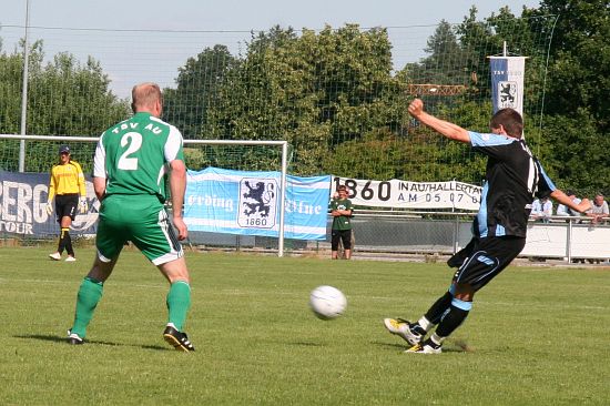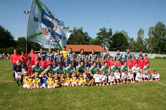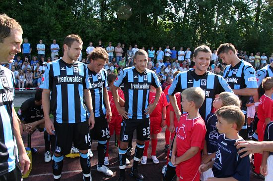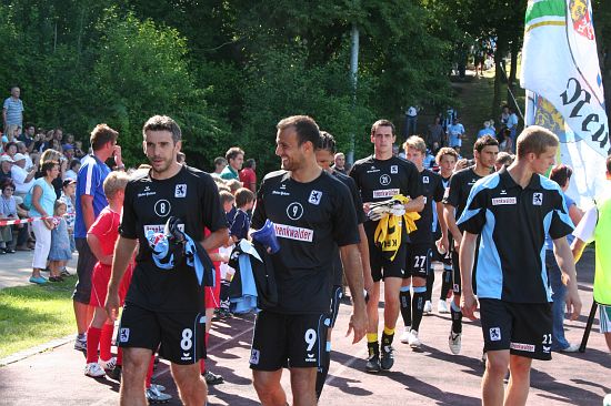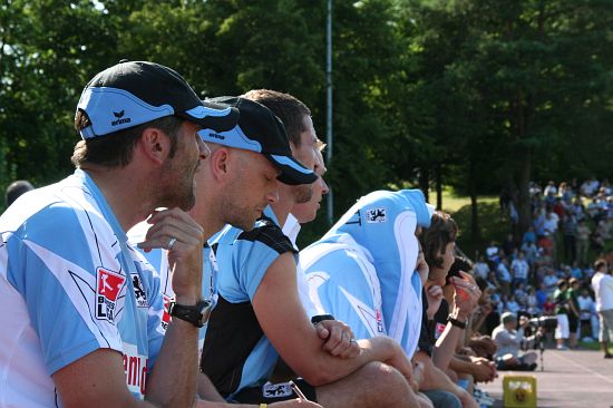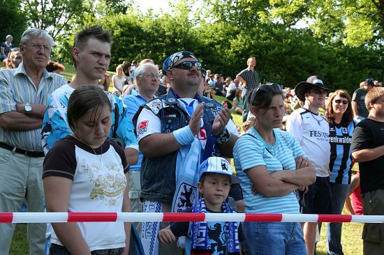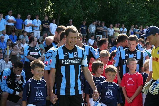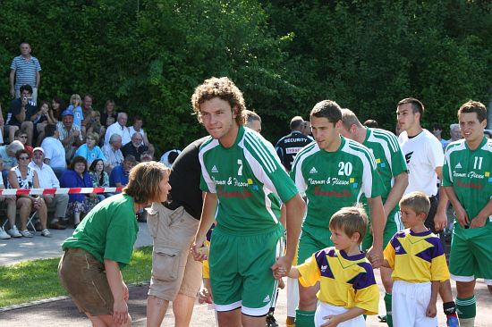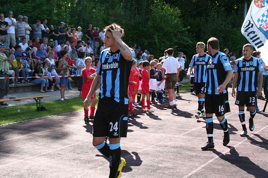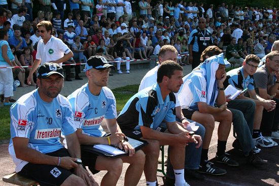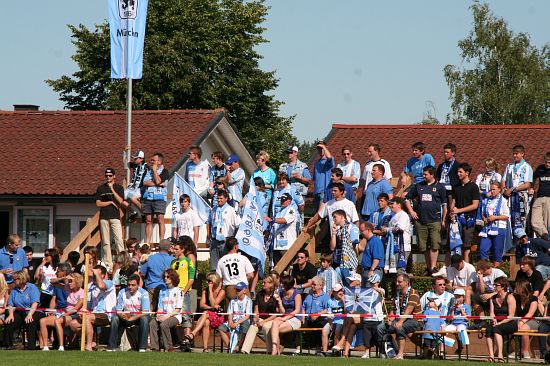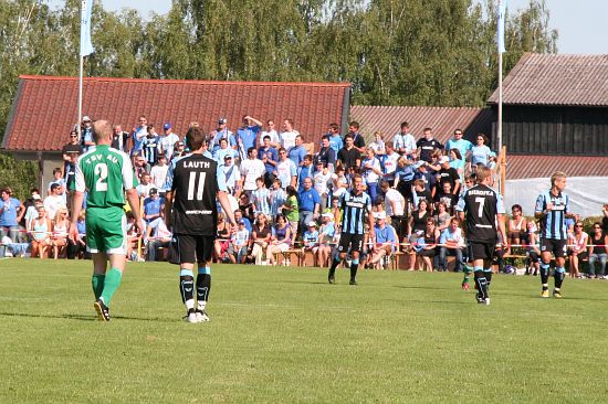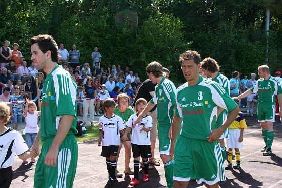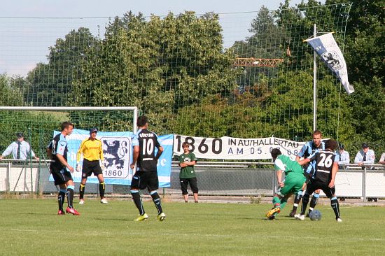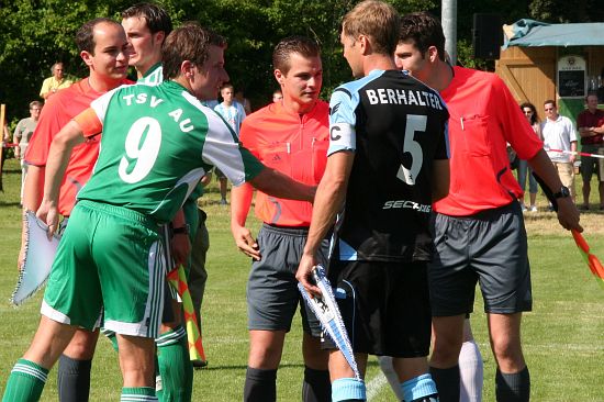 Bekanntlich haben die Löwen in der Hallertau besonders viele Fans. Entsprechend wurde das Profi-Team um Marco Kurz in Au begrüßt. Zusammen mit den Fans freute sich auch Bürgermeister Karl Ecker, dass die Löwen zu einem „Galaspiel“ nach Au kamen. In der ersten Halbzeit zeigten die 60er was Fußball ist, entsprechend lautete das Ergebnis schon nach den ersten 45 Minuten 8: 0. So konnte die 2. Halbzeit etwas ruhiger laufen, sie endete mit einem 10: 0. Nicht einmal die Mitglieder des TSV konnten sich zurückhalten, und so wurden die Blau-Weißen einheitlich angefeuert. Noch im EM-Fieber wurde bei traumhaften Sommertemperaturen nach dem Spiel die Josef-Eberwein-Straße zur Fanmeile, während die Löwen standesgemäß im Jagdsaal des Schlosses tafelten. Ein rundum gelungenes Gastspiel und ein Highlight für alle Fußballfans.