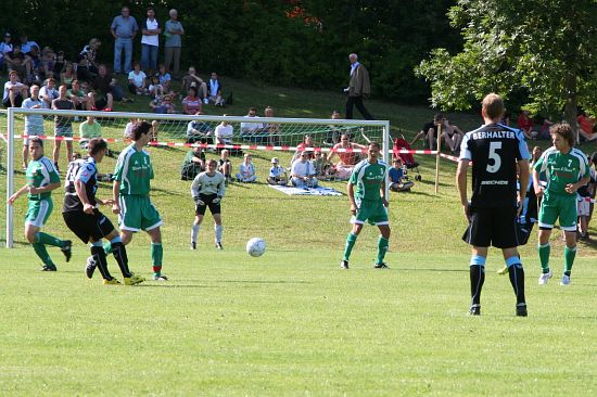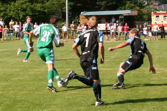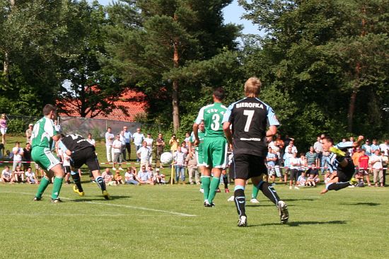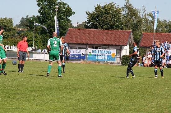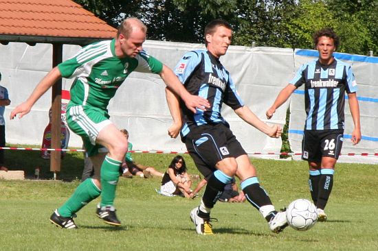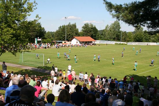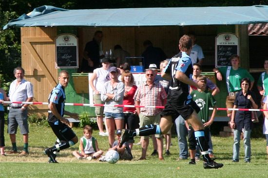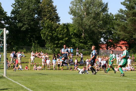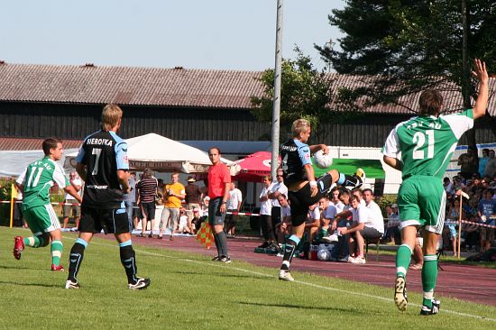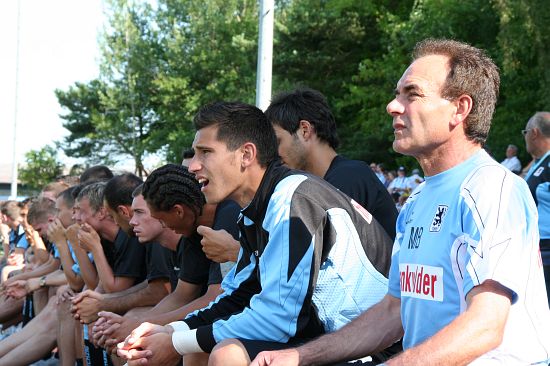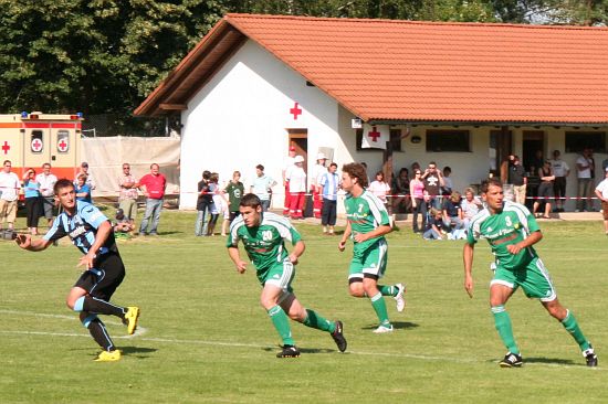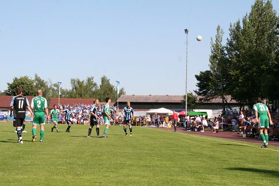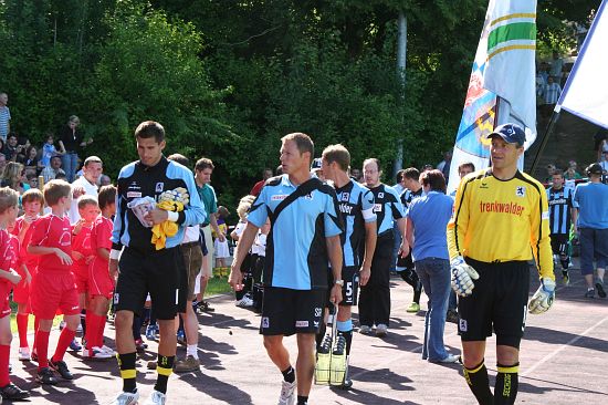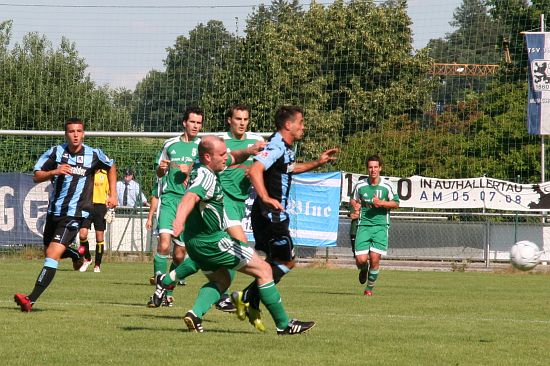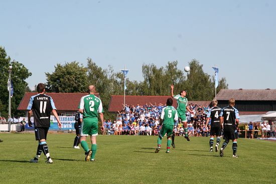 Bekanntlich haben die Löwen in der Hallertau besonders viele Fans. Entsprechend wurde das Profi-Team um Marco Kurz in Au begrüßt. Zusammen mit den Fans freute sich auch Bürgermeister Karl Ecker, dass die Löwen zu einem „Galaspiel“ nach Au kamen. In der ersten Halbzeit zeigten die 60er was Fußball ist, entsprechend lautete das Ergebnis schon nach den ersten 45 Minuten 8: 0. So konnte die 2. Halbzeit etwas ruhiger laufen, sie endete mit einem 10: 0. Nicht einmal die Mitglieder des TSV konnten sich zurückhalten, und so wurden die Blau-Weißen einheitlich angefeuert. Noch im EM-Fieber wurde bei traumhaften Sommertemperaturen nach dem Spiel die Josef-Eberwein-Straße zur Fanmeile, während die Löwen standesgemäß im Jagdsaal des Schlosses tafelten. Ein rundum gelungenes Gastspiel und ein Highlight für alle Fußballfans.