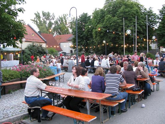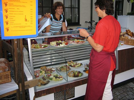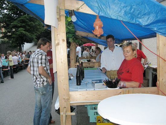 Rohrbach, 19.7.08 (ted). Nach der ersten Verschiebung um eine Woche kamen wieder Sorgenwolken auf. Ein paar Tropfen fielen auch, doch im Vergleich zu München, wo es um halb 11 schon schüttete, konnte das Rohrbacher Weinfest durch die Wetterfront balancieren. Vielmehr schweißte es die Dorfgemeinschaft umso mehr zusammen. Und alle hatten sich wieder viel Mühe bei Weinen und Speisen gegeben.