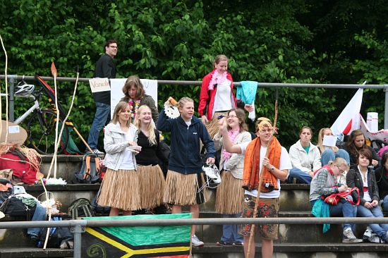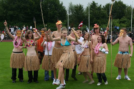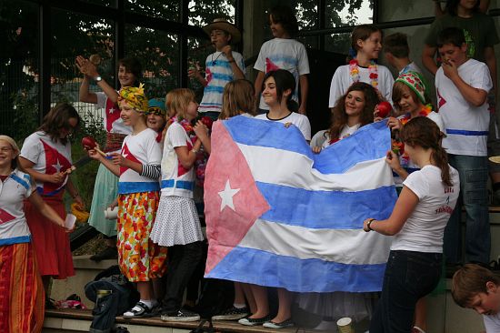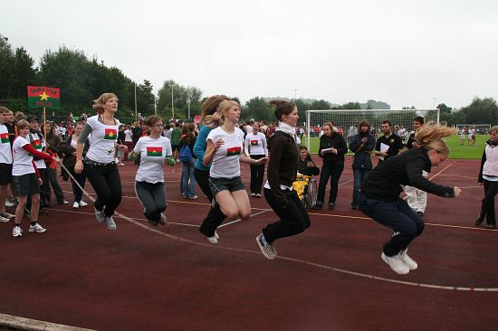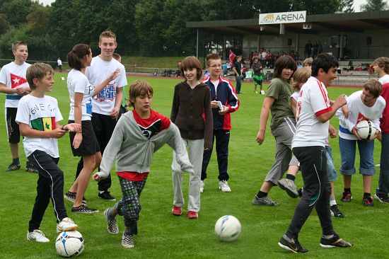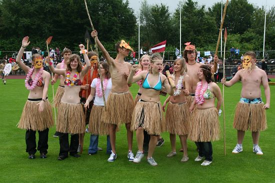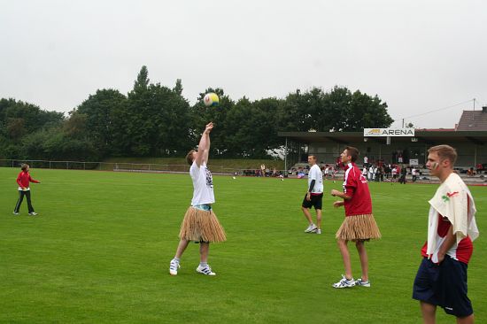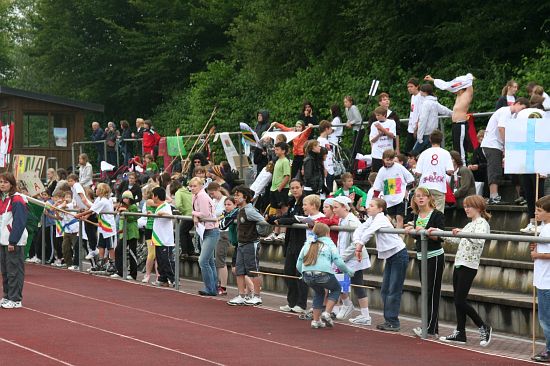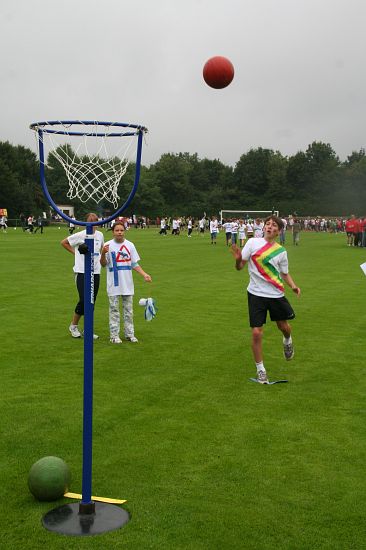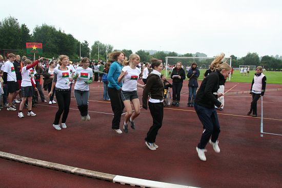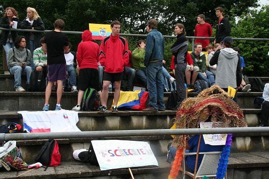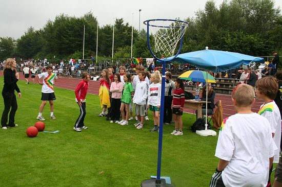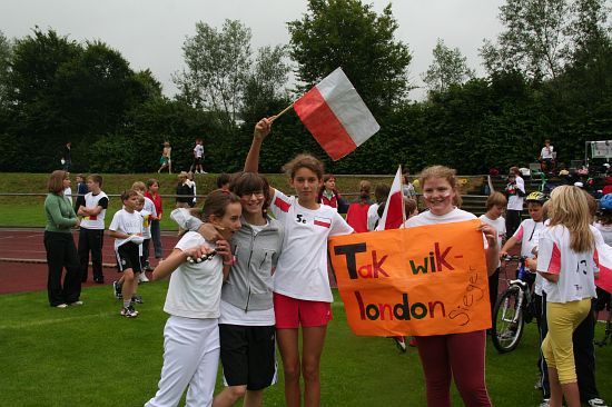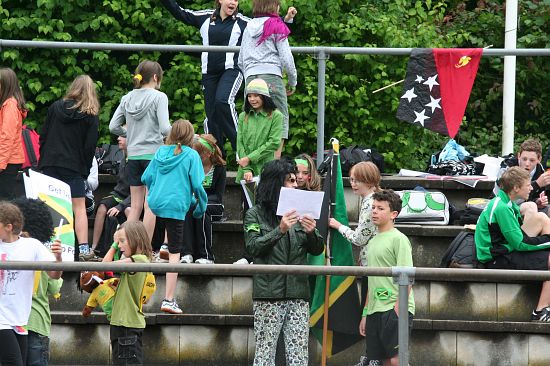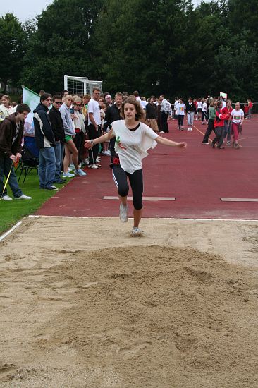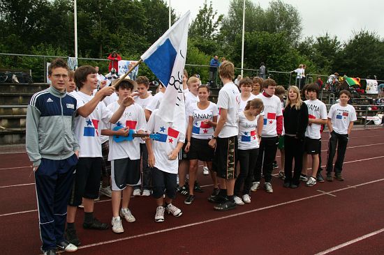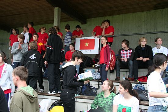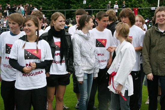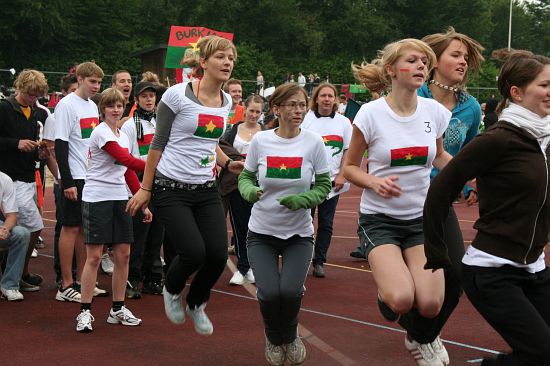 Wolnzach (23.7.2008; hpb). Bei idealem Sportlerwetter fanden am Mittwoch die „Olympischen Sommerspiele“ statt. Die Schulklassen repräsentierten Sportmannschaften aus verschiedenen Ländern der Welt, die an „internationalen“ Wettkämpfen in der ARS-Arena teilnahmen. Alle waren in bester Stimmung und genossen die willkommene Abwechslung vom schulischen Alltag. Den Zuschauern bot sich beim Einzug der Sportler ein farbenfroher und prächtiger Anblick mit internationalem Flair, bevor die einzelnen Teams zum Wettstreit gegeneinander antraten.