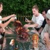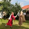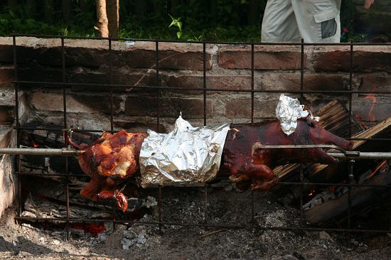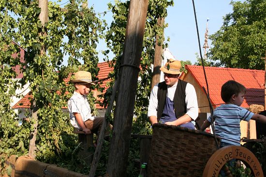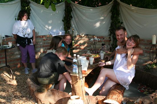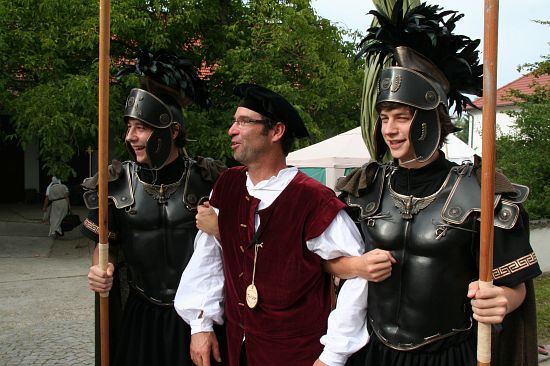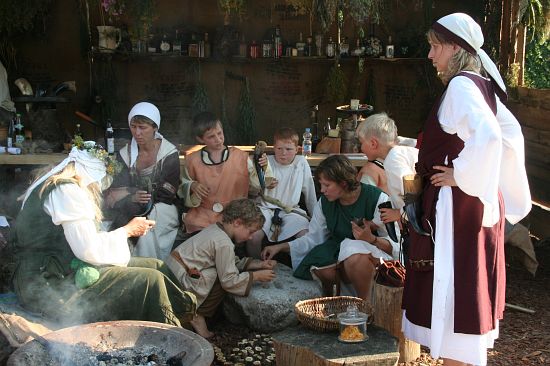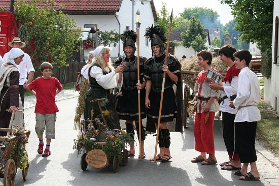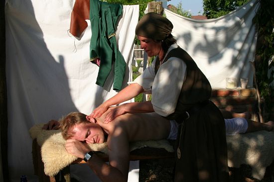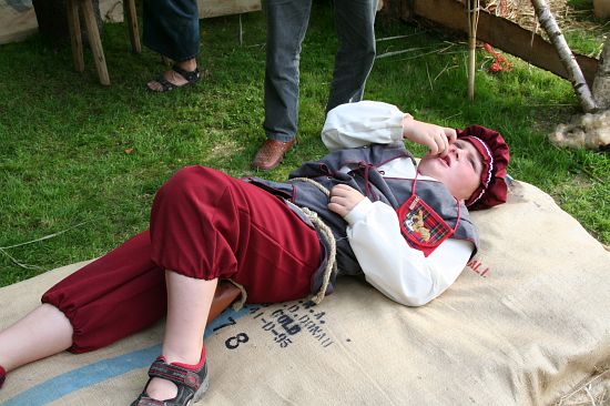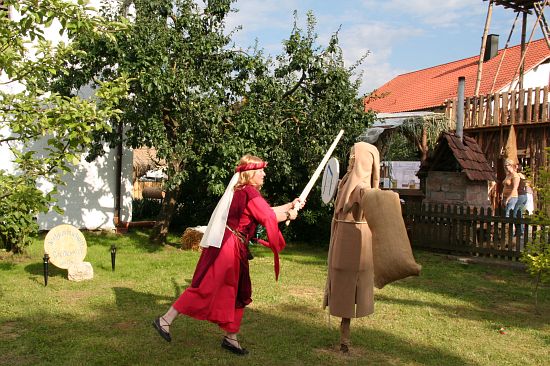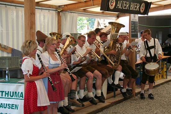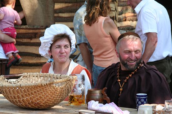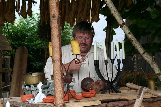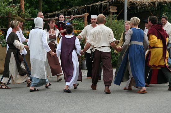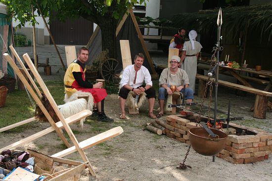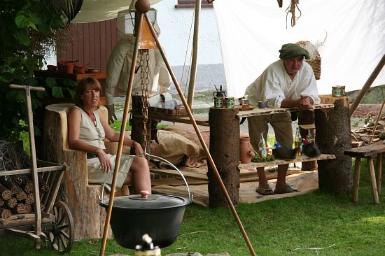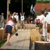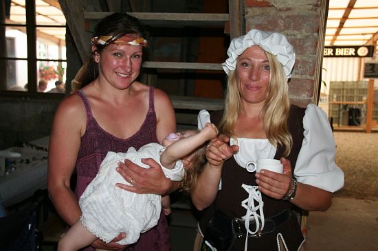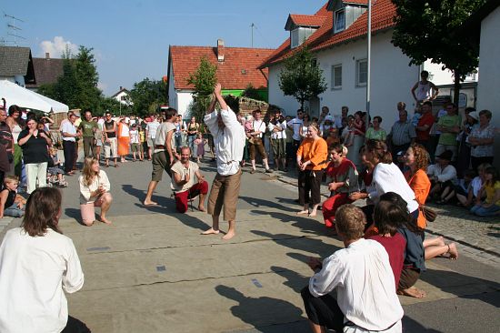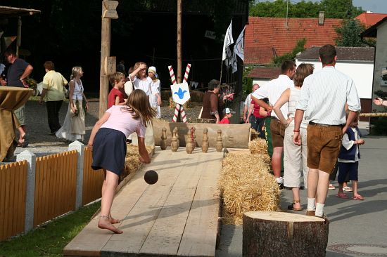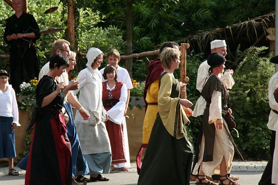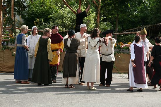 Sünzhausen (26./27.7.2008; hpb). In Begleitung des Landrats Josef Schäch, 2. Bürgermeisterin Gabi Kaindl und des Haupt-Organisators Johannes Zellner besuchte unser rasender Reporter am Samstagabend die mittelalterliche Dorfgemeinschaft Sindeohuisir. Nach der Besichtigung der einzelnen Stände, die liebevoll aus Holz gezimmert worden waren, hätten die Eindrücke nicht vielseitiger sein können: Spanferkel und Hähnchen wurden an verschiedenen Feuerstellen gegrillt und gebraten. Überhaupt war für das leibliche Wohl hervorragend gesorgt, es gab Mittagstisch, Brotzeiten und viele andere Speisen sowie Getränke von Fa. Trumann. Das Lagerleben brodelte, es herrschte beste Stimmung und den Besuchern wurde viel geboten. Sie fühlten sich um Jahrhunderte zurückversetzt, so stilecht waren Kostüme und Requisiten. Ein großes Lob an die Sünzhausener, die ihre 1200-Jahr-Feier so großartig auf die Beine gestellt haben.