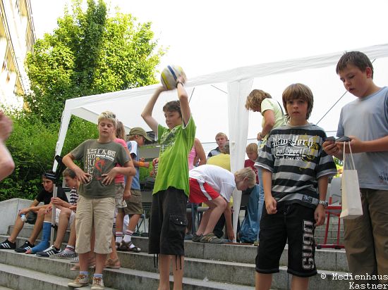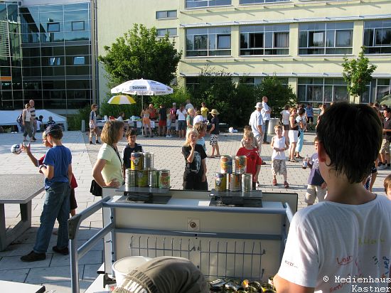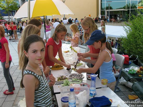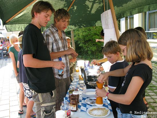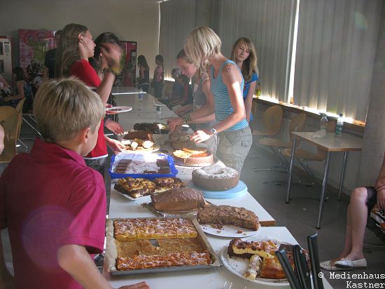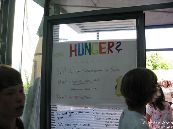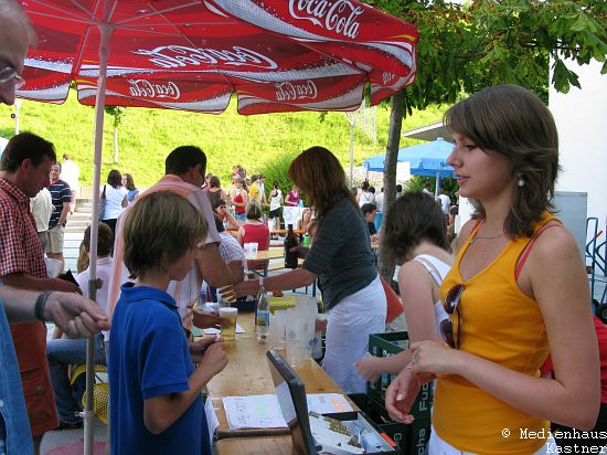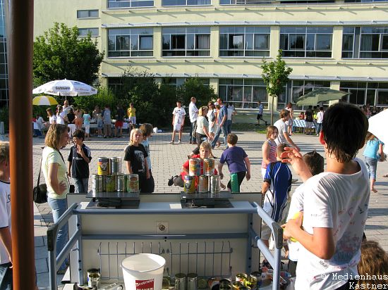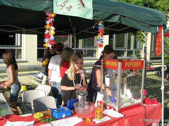Köstliche Kuchen aus dem Schulcafé verleiteten zum Schlemmen, doch Zurückhaltung war geboten. Schließlich wurden rund um den Schulhof noch einige Gaumenfreuden angeboten, die keine Wünsche offen ließen. Super-Sandwiches konkurrierten mit einem Schweinebraten in der Semmel, und Popcorn ließ den Durst so richtig aufleben, gegen den der Elternbeirat natürlich die richtigen Heilmittel parat hatte.