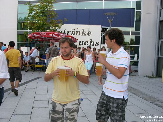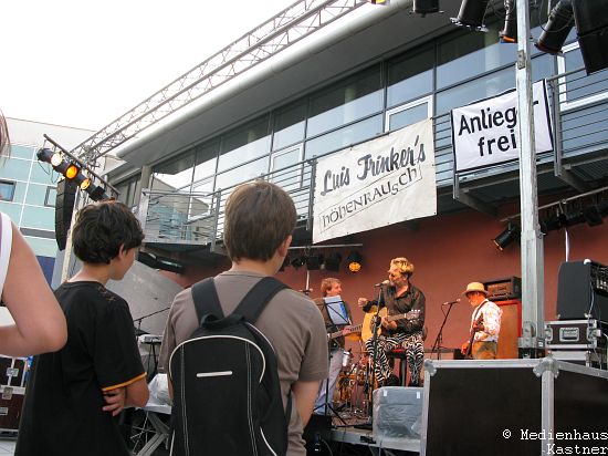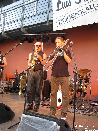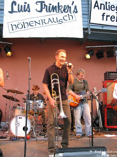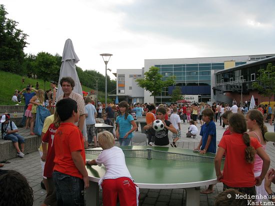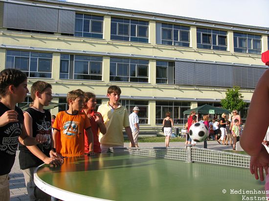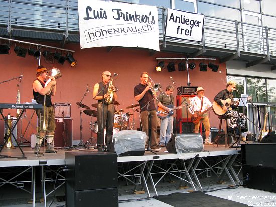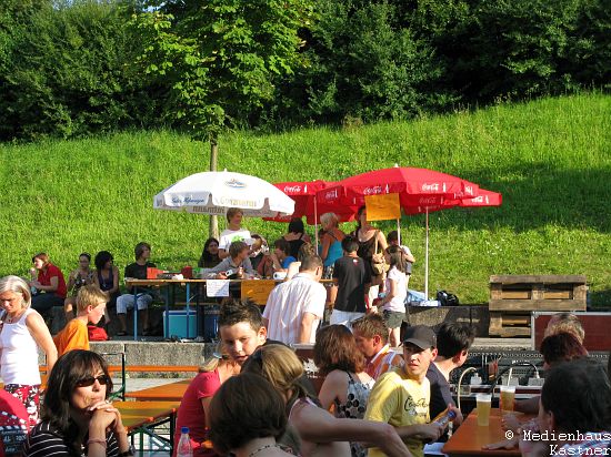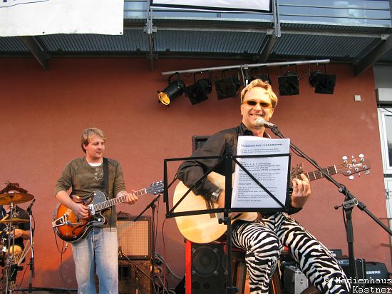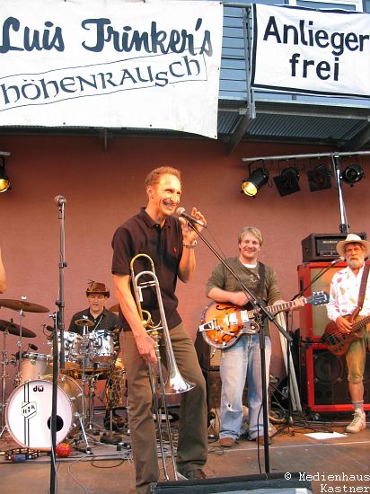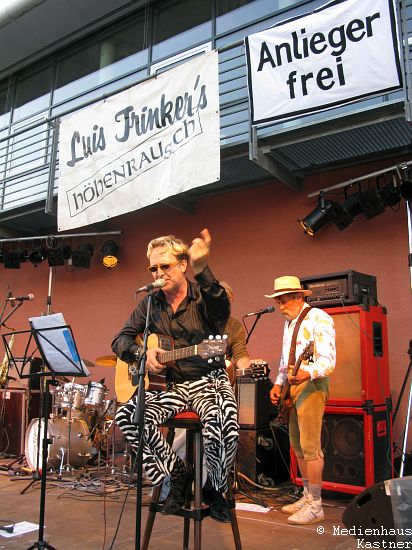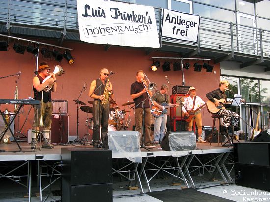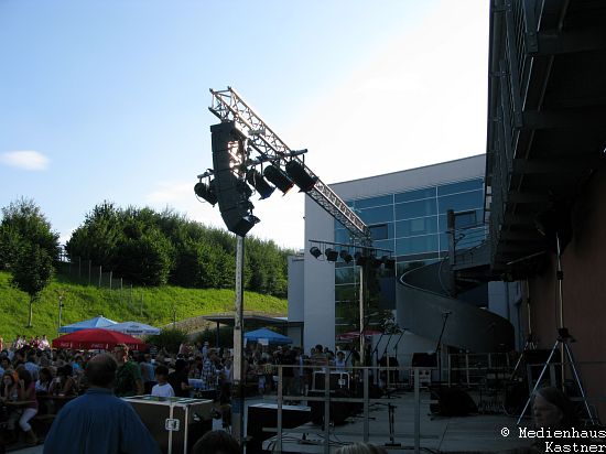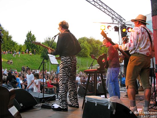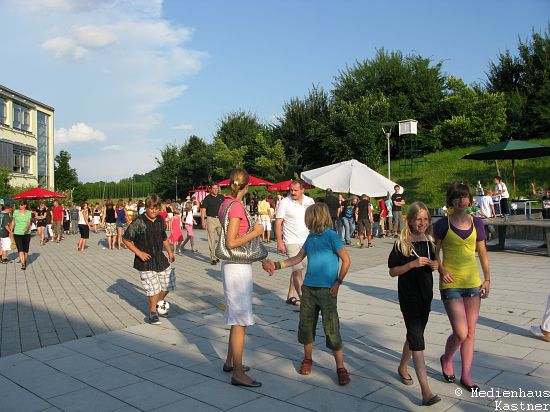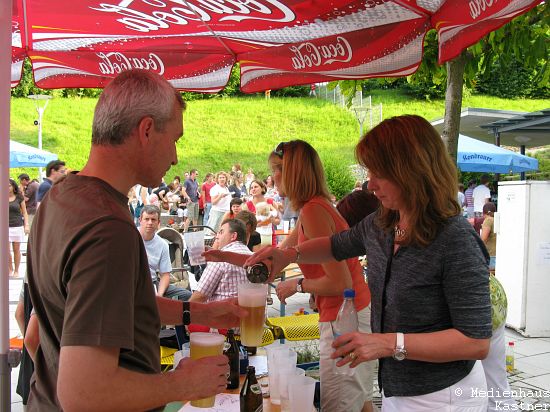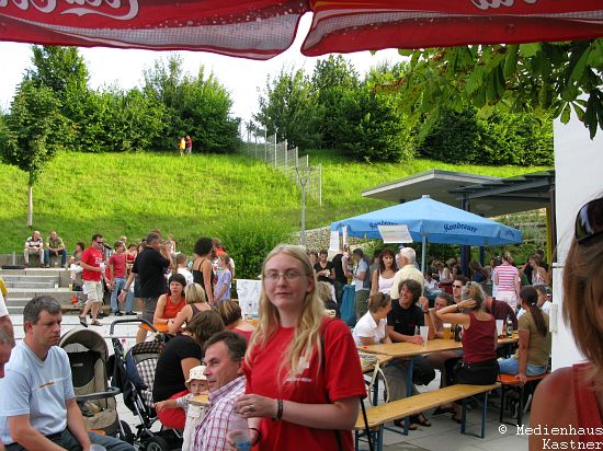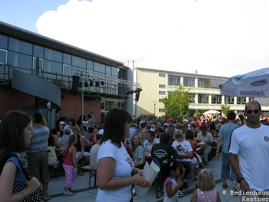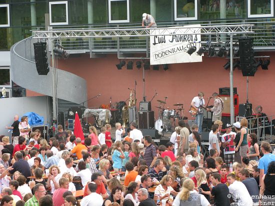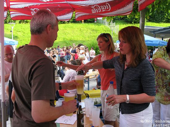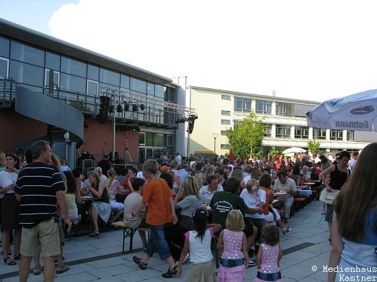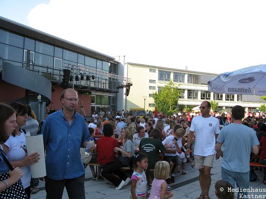 Es war ein richtig schönes Sommerfest, das Wetter zeigte sich gutgelaunt, und in den Abend begleitete dann „Luis Trinker’s Höhenrausch“, eine Powerband um Kunstlehrer Christian Kuttler, deren musikalisches Repertoire so breit ist wie das philosophische der Gymnasiums-Bibliothek. Fritz Winter jun., Mitglied der bekannten Gruppe „Dellhau’n“, gesellte sich aus der Elternschaft mit seiner Trompete hinzu, und auch einige „stimmgewaltige“ Lehrer durften auf der Bühne ihr Können demonstrieren.