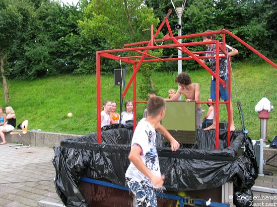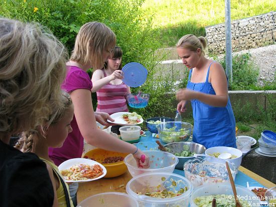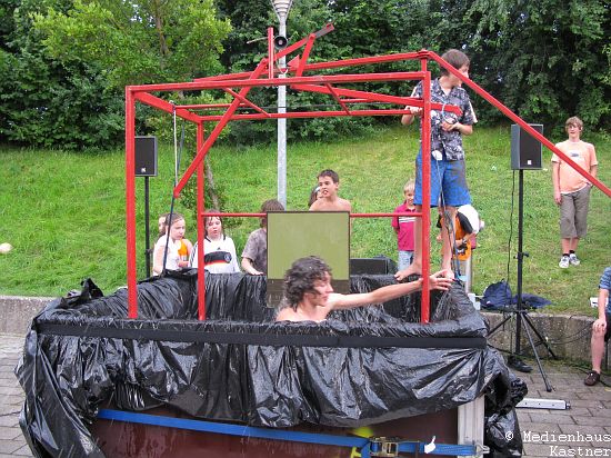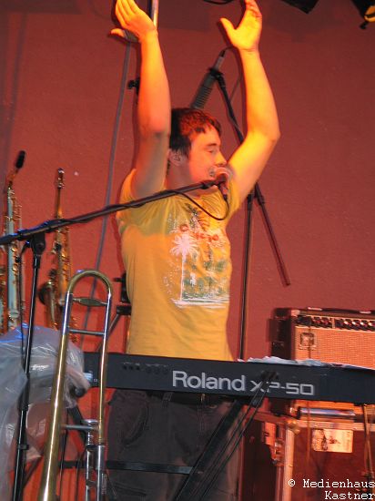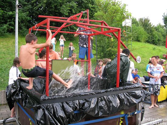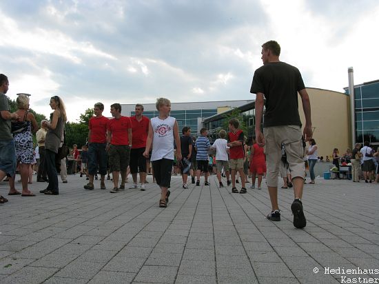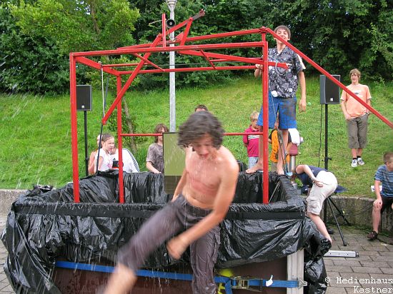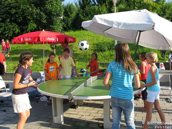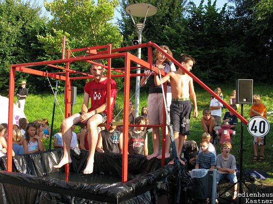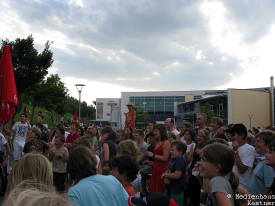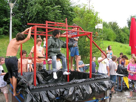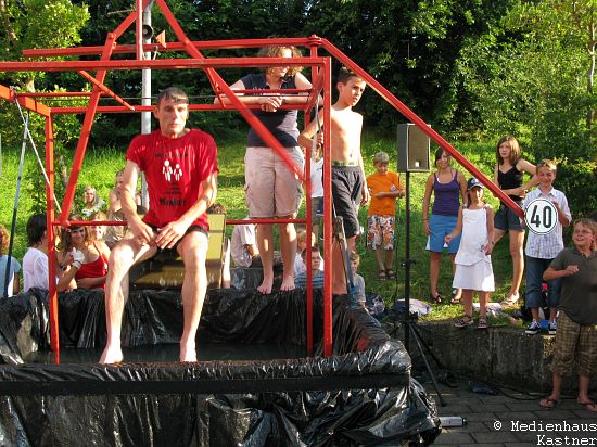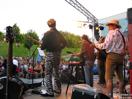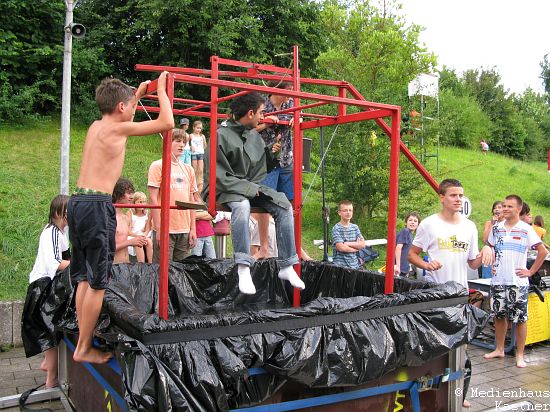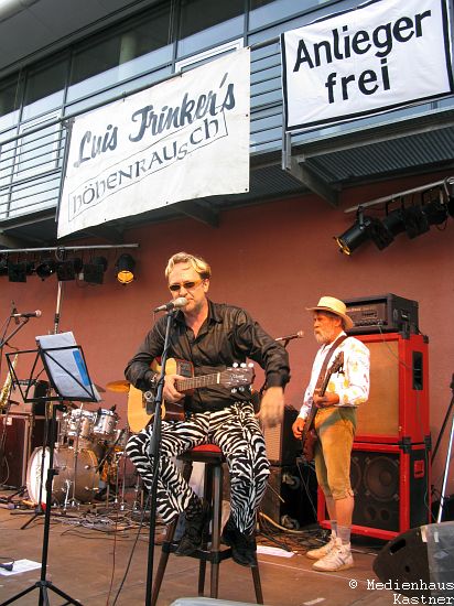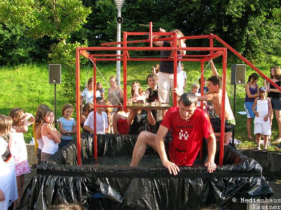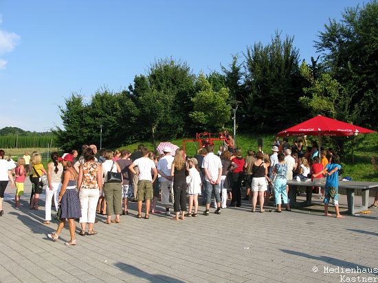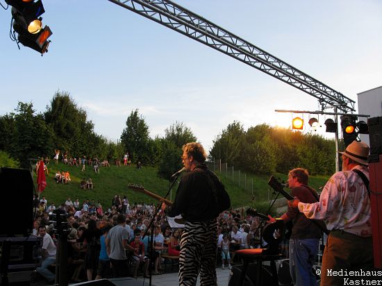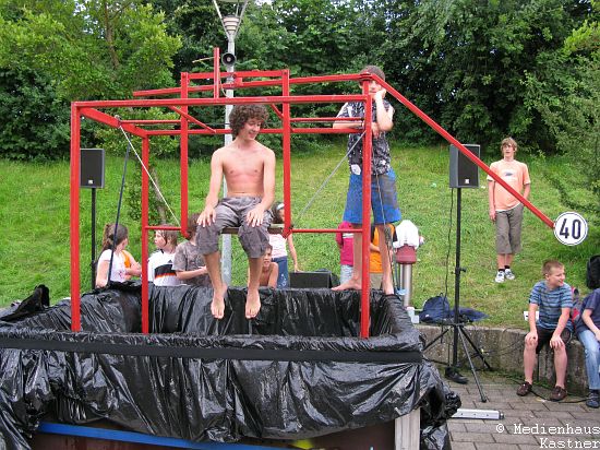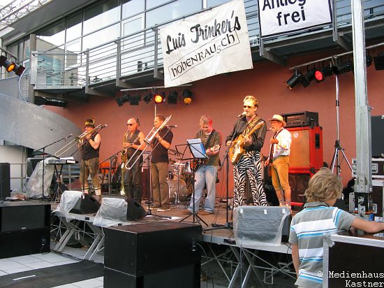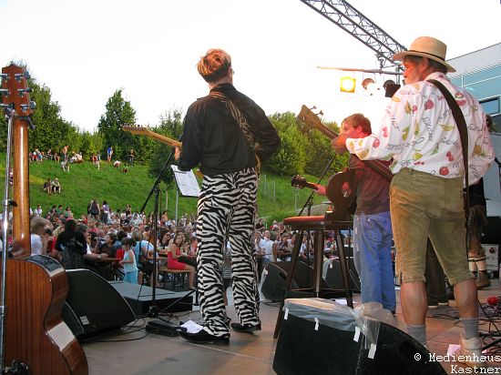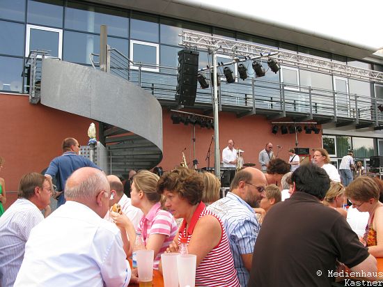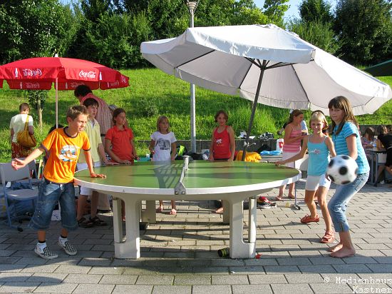 Es war ein richtig schönes Sommerfest, das Wetter zeigte sich gutgelaunt, und in den Abend begleitete dann „Luis Trinker’s Höhenrausch“, eine Powerband um Kunstlehrer Christian Kuttler, deren musikalisches Repertoire so breit ist wie das philosophische der Gymnasiums-Bibliothek. Fritz Winter jun., Mitglied der bekannten Gruppe „Dellhau’n“, gesellte sich aus der Elternschaft mit seiner Trompete hinzu, und auch einige „stimmgewaltige“ Lehrer durften auf der Bühne ihr Können demonstrieren.