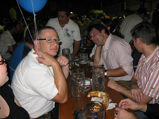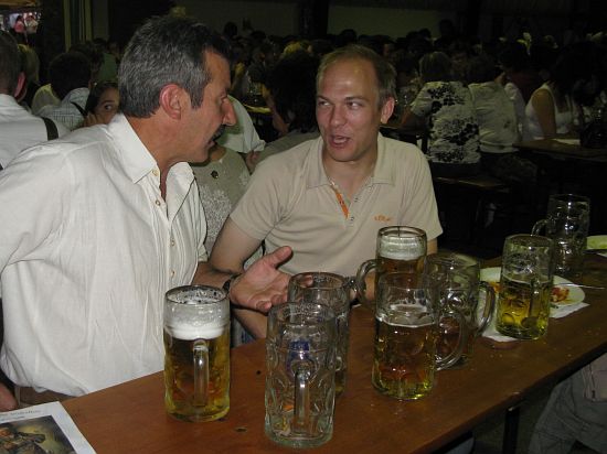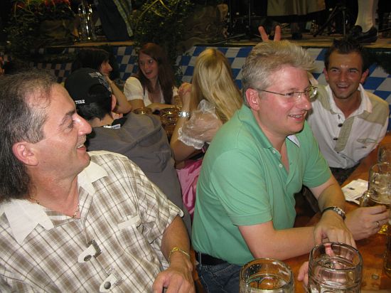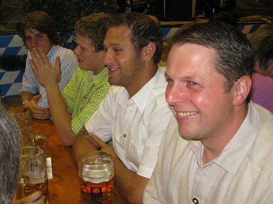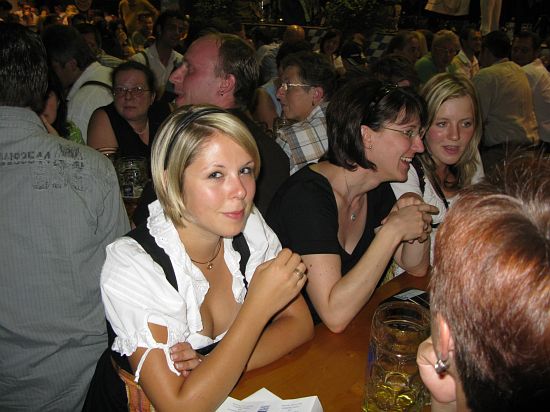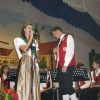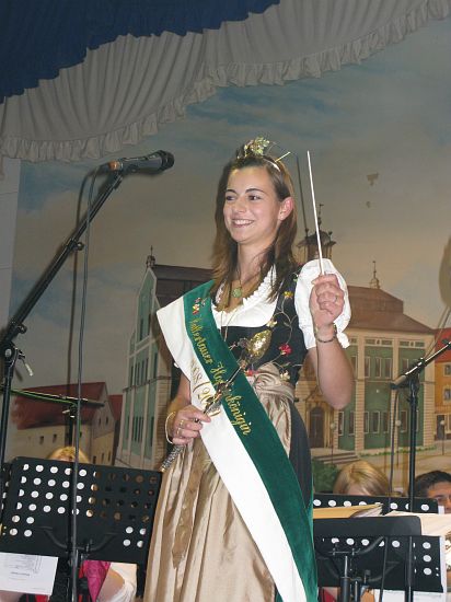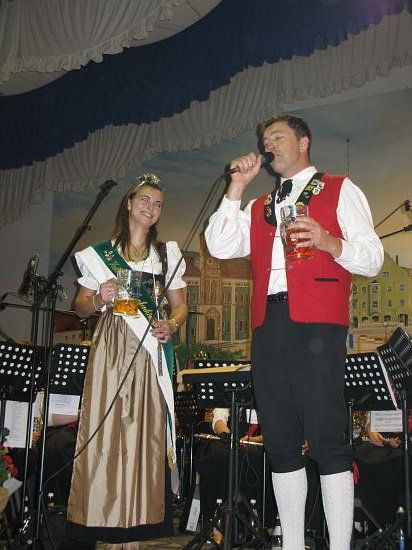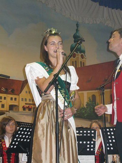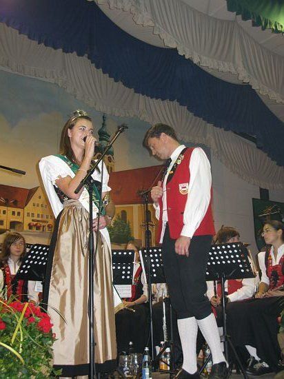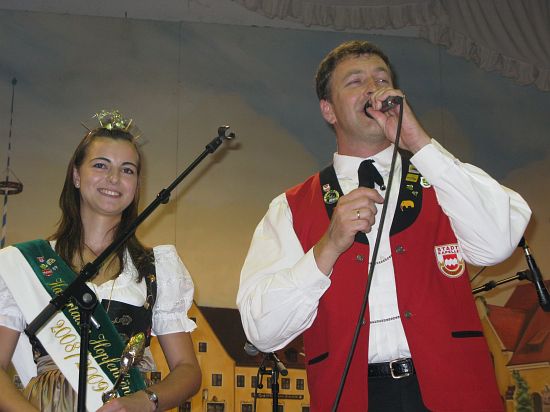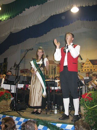 Wolnzach, 14.8.08 (ted). Ein Abend des Hallertauer Volksfests ist den Mitarbeitern der Firmen gewidmet, mehr also ein Wolnzacher Abend, zu dem auch sonstige, ältere Wolnzacher gerne kommen. Wieder fasste die Festhalle kaum die Besucher. Die 1. und 2. Hopfenkönigin traten auf, dirigierten die Geisenfelder Stadtkapelle, die gerne in Wolnzach alljährlich spielt. So auch zum 60. Jubiläum.