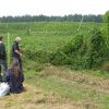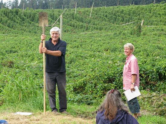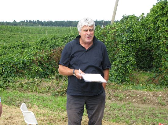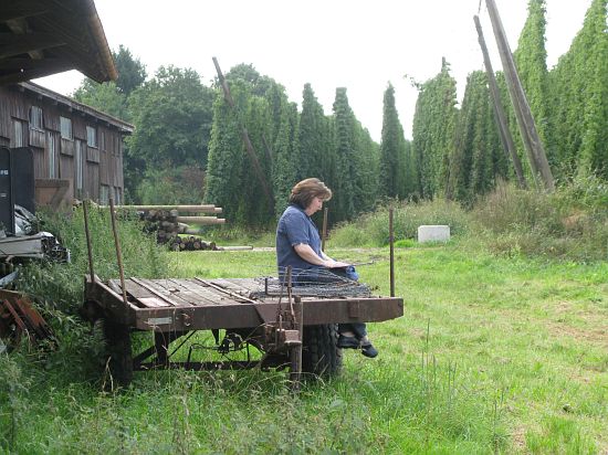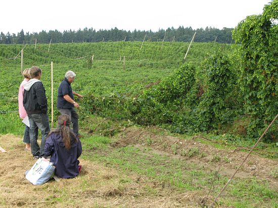 Als am Samstag die Arbeit in einem Hopfengarten fortgesetzt wurde, wählte Organisator Eduard Kastner bewusst die durch Sturm eingestürzte Anlage am Barthhof . So grotesk kann sich die Hallertau zeigen.