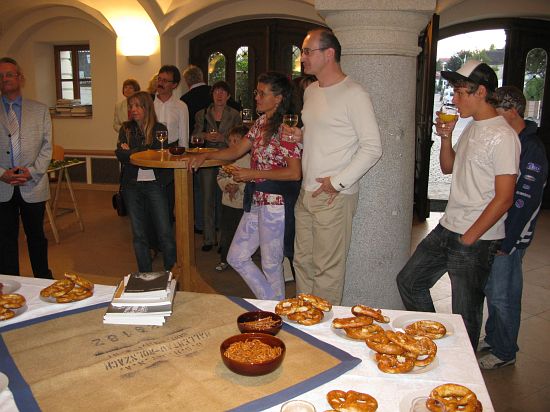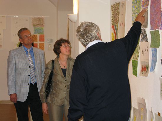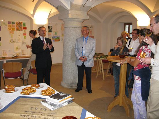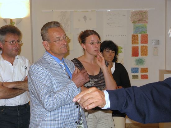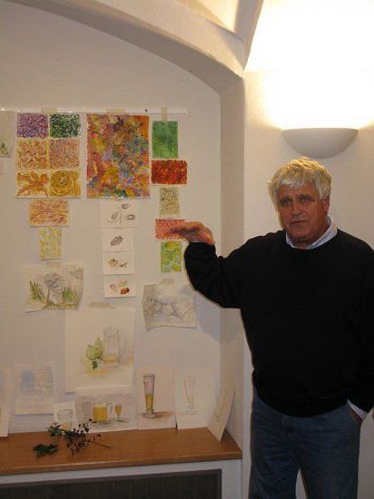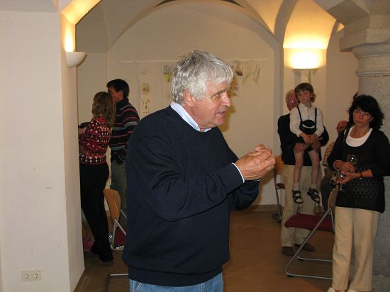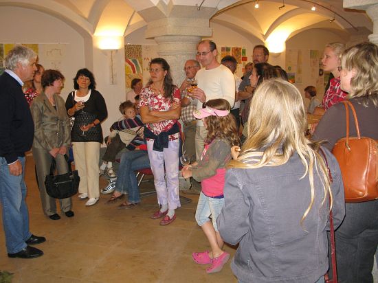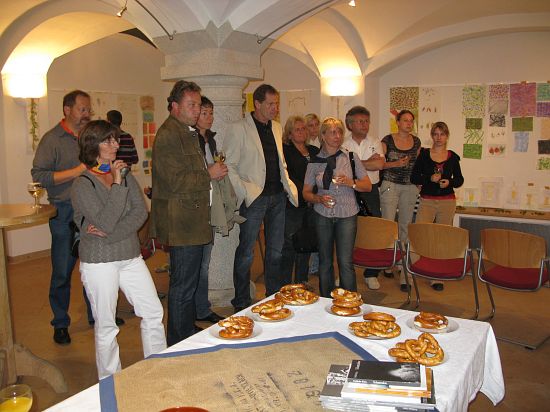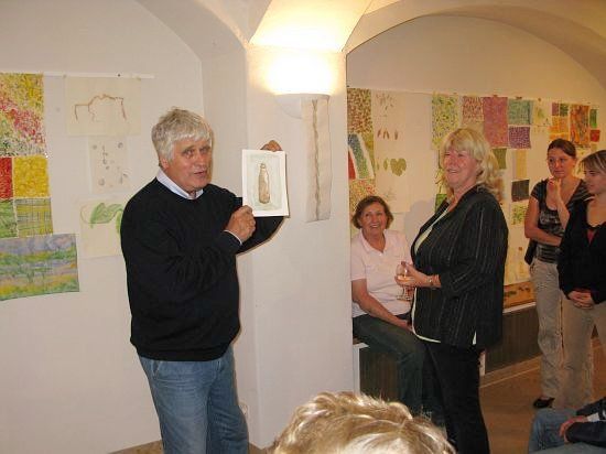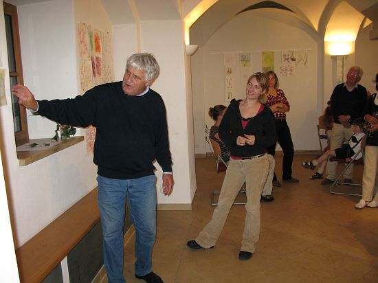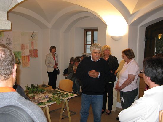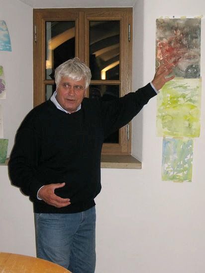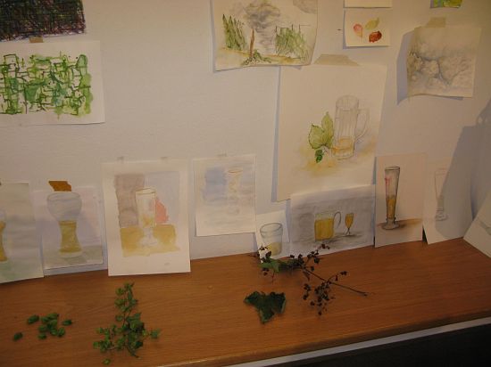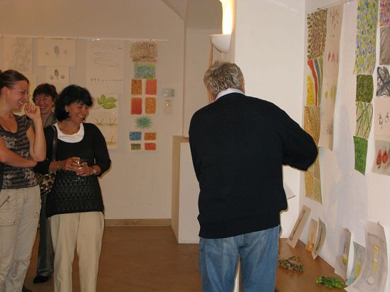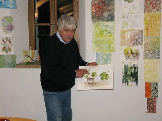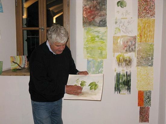 Wolnzach, 17.8.08 (ted). Die Wolnzacher Sommerakademie endete am Samstagabend wie im Vorjahr mit einer Präsentation aller geschaffenen Werke als Vernissage. Auch die begleitende Dekoration mit Hopfen und Hopfenreben-Bildern kam nicht zu kurz. Prof. Fridhelm Klein, der Dozent, bewertete alle Werke, erklärte ihren Werdegang. Kulturreferent Alois Siegmund, der im Namen des Marktes alle Teilnehmer begrüßte und die Akademie würdigte, staunte zusammen mit den Familien und Freunden, wie viel in nur zwei Tagen erreicht wurde, quantitativ und qualitativ. Es dominierten 2008 die Aquarelle, die schwierigste Maltechnik. Alle Teilnehmer waren ebenfalls begeistert. So wird es 2009 wieder die Wolnzacher Sommerakademie geben – mit Prof. Klein.