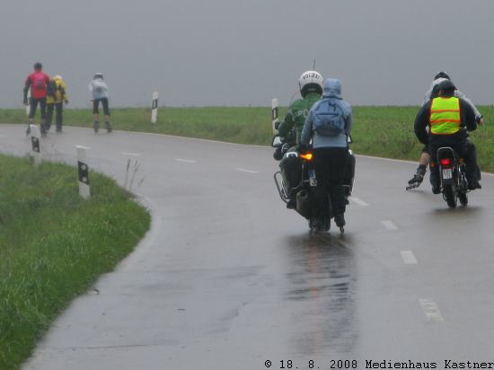 Schauerhaft, doch unverfroren: 4. Hallertauer Inline-Tour trotzt dem Wetter / 50 Inline-Skater absolvieren bei widrigsten Bedingungen unfallfrei die 60-km-Distanz