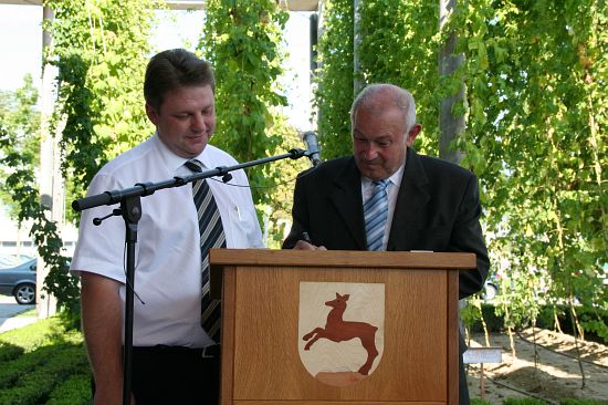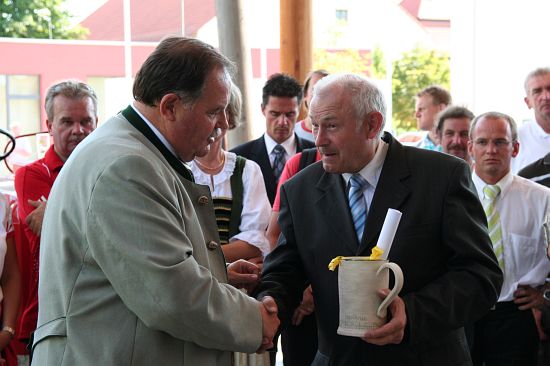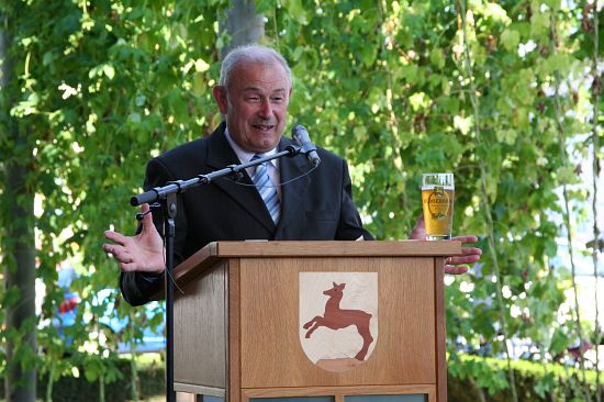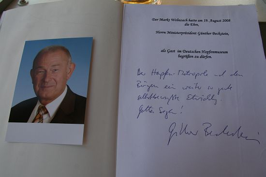 Der Ministerpräsident wuchs nämlich in Hersbruck auf, weiß um Preisnöte, um das Herausreißen des Hopfens. Zu Wolnzach verbindet ihn seit Jahren seine Bürochefin: Sie kommt aus dem Markt. So gelobte Dr. Beckstein, dass er nach der Wahl wiederkomme, nach einem Besuch im Kloster Scheyern das Hopfenmuseum zu besichtigen. Die Hüller Forschungsförderung habe sich voll bewährt. Sie werde deshalb unvermindert fortgesetzt. Dr. Beckstein hatte für alle Anliegen der Hopfenpflanzer ein großes Herz. Er unterstützt die Zulassung ausländischer Saisonkräfte ebenso wie die Zurverfügungstellung von Wasser zur Bewässerung.