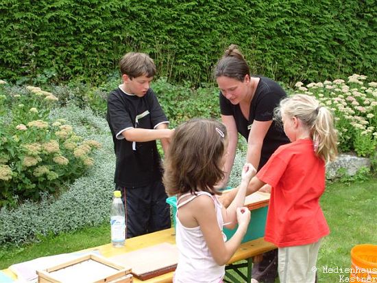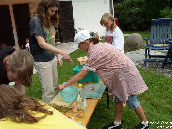 Im Rahmen des Wolnzacher Ferienprogramms schöpften Kinder einen Nachmittag lang gemeinsam mit Mitgliedern des Rotaract Clubs Hallertau Papier. Begeistert waren die Kinder bei der Sache und verzierten bereits nach kurzer Zeit die ersten Papiere mit Wasserzeichen und Blumenmustern. Nach einem viel zu schnell vergangenen Nachmittag konnte jedes Kind stolz seine selbstgefertigten Papierkunstwerke mit nach Hause nehmen.