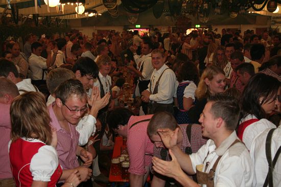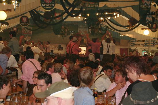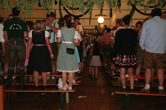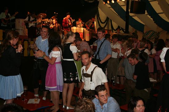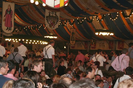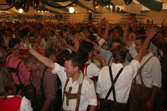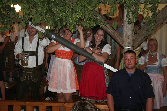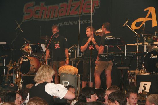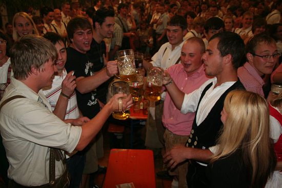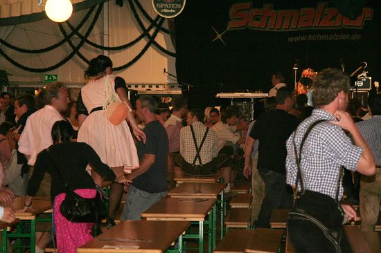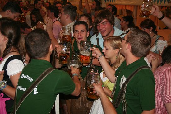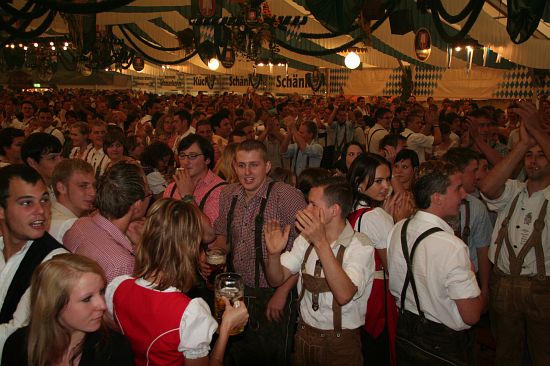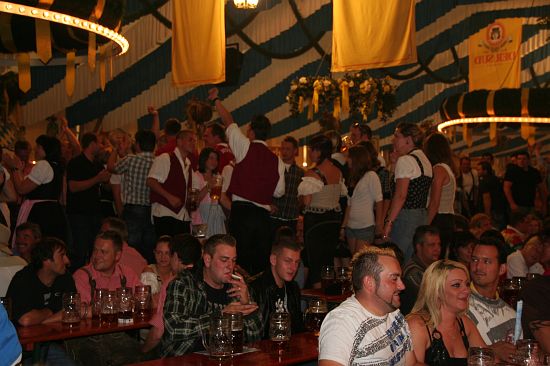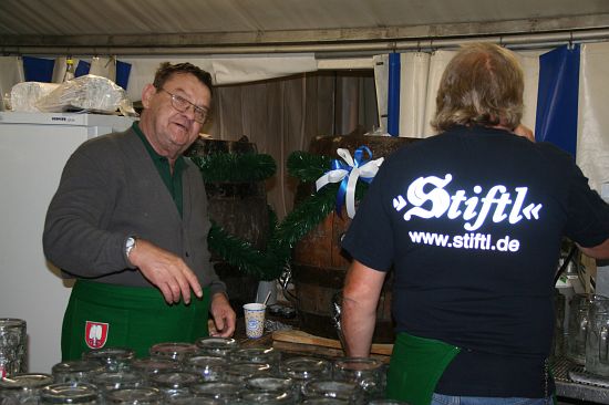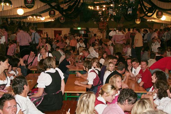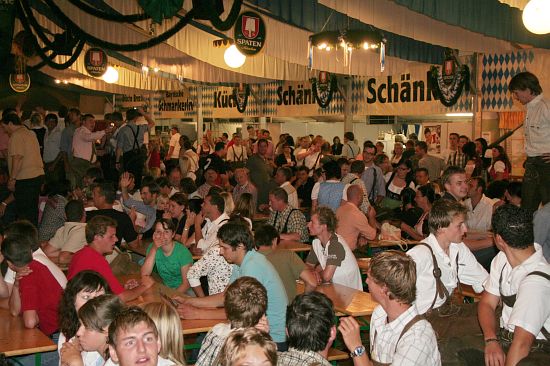 Laut der neuen Regelung waren die Bierzelte ab halb sechs geöffnet, und innerhalb von wenigen Minuten waren sie auch schon voll. Pünktlich um sechs Uhr wurde die erste Maß ausgeschenkt. Im Stiftl-Festzelt, in dem Lorenz Stiftl natürlich persönlich anwesend war, wurde dann, um Punkt sieben das Deutschlandlied gespielt. Circa 2500 Gäste stimmten, mit der Hand auf dem Herzen, ein. Dann ging es mit „An Barthelmarkt in Oberstimm, ja da muaß i hi!“ erst richtig los.