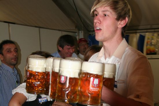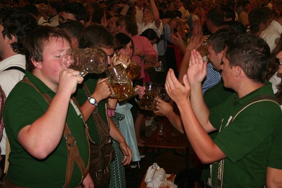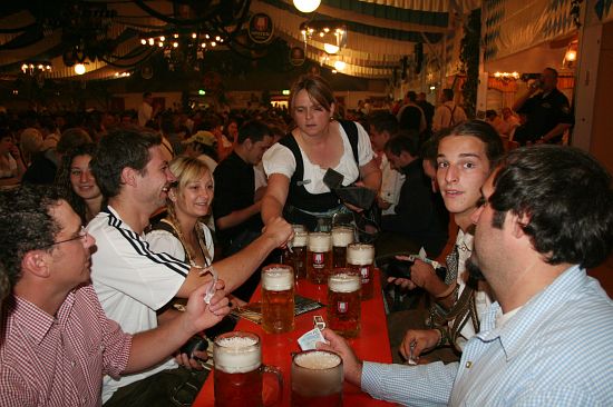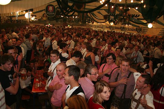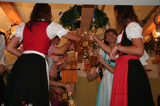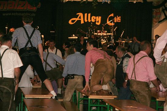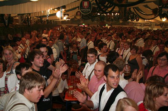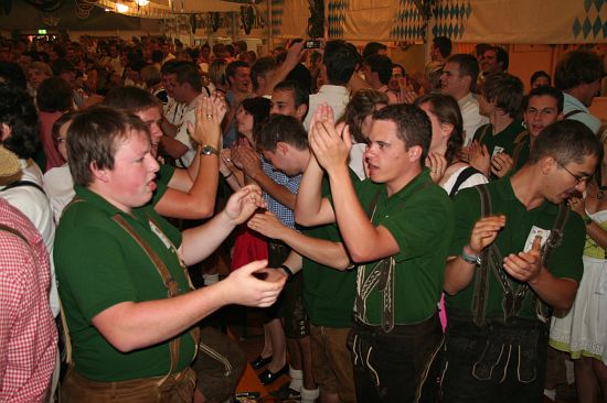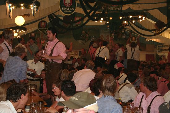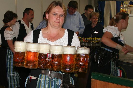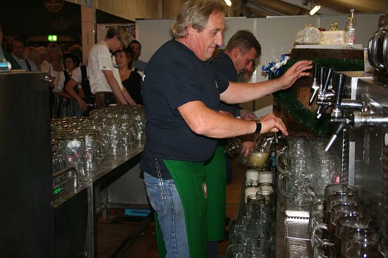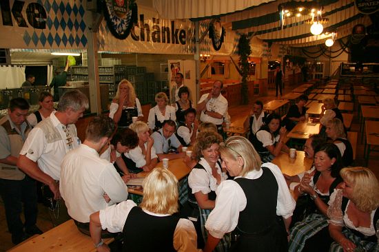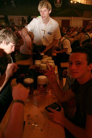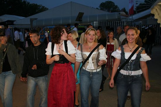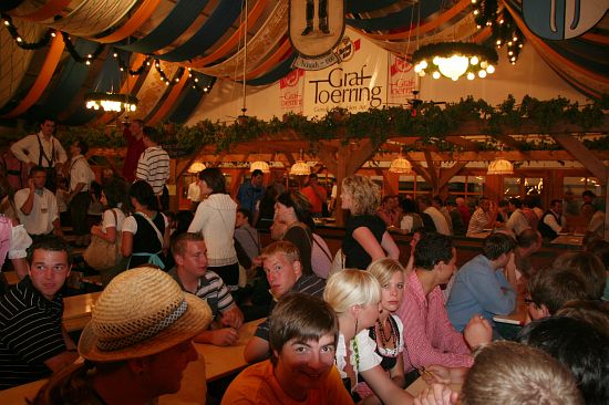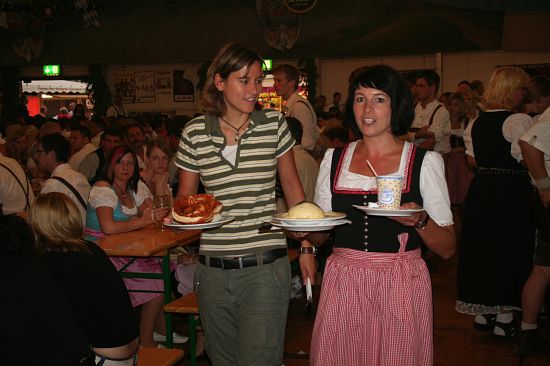 Laut der neuen Regelung waren die Bierzelte ab halb sechs geöffnet, und innerhalb von wenigen Minuten waren sie auch schon voll. Pünktlich um sechs Uhr wurde die erste Maß ausgeschenkt. Im Stiftl-Festzelt, in dem Lorenz Stiftl natürlich persönlich anwesend war, wurde dann, um Punkt sieben das Deutschlandlied gespielt. Circa 2500 Gäste stimmten, mit der Hand auf dem Herzen, ein. Dann ging es mit „An Barthelmarkt in Oberstimm, ja da muaß i hi!“ erst richtig los.