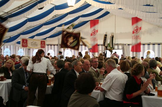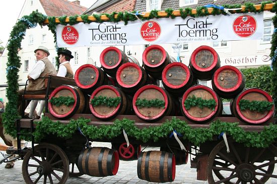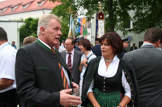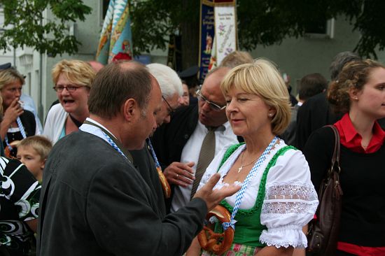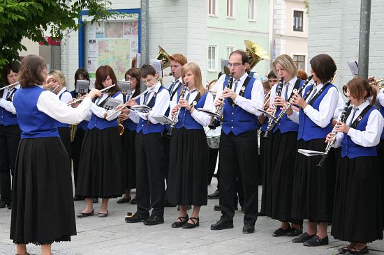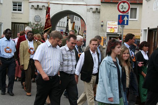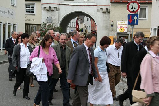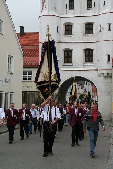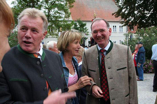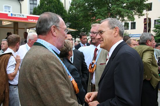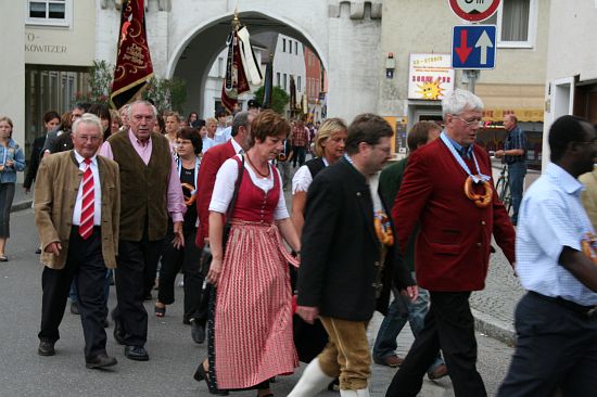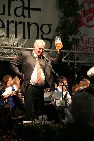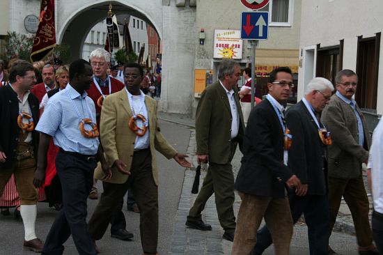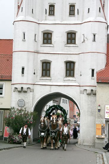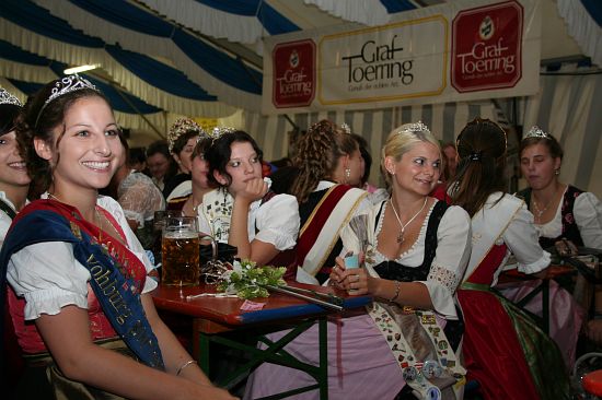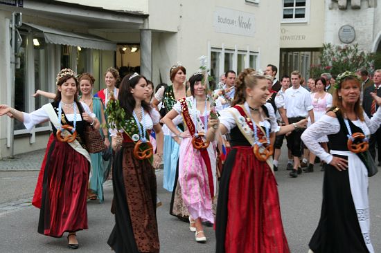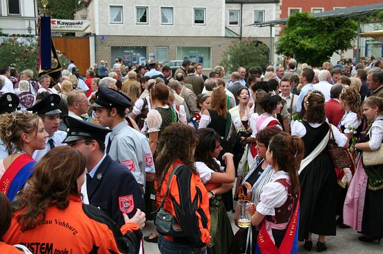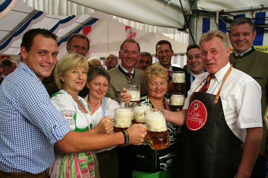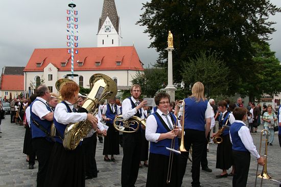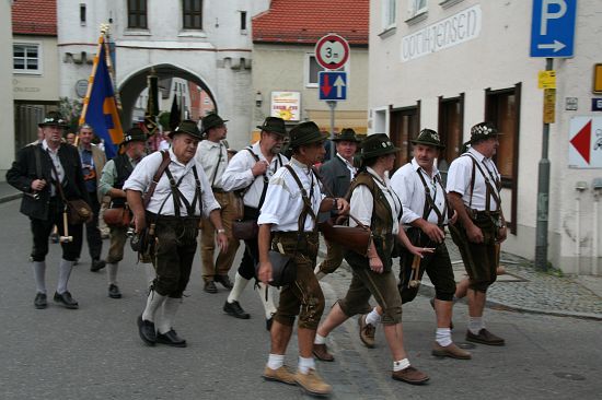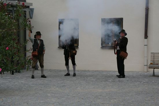 Mit dem Standkonzert der Stadtkapelle Vohburg vor dem Rathaus begann das 45. Vohburger Volksfest. Die Böllerschützen hatten das Standkonzert und den Ausmarsch mit Salutschüssen umrahmt. In Begleitung vieler „Gekrönter Häupter“ und den Ehrengästen marschierten sie zum Festplatz. Bürgermeister Martin Schmid schlug das erste Fass gekonnt mit 3 Schlägen an.