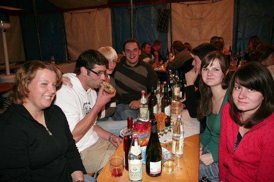 "Im September noch ein Weinfest" Das kann bei den Temperaturen riskant werden, aber nicht wenn der Fußballverein Niederlauterbach das zusammen mit der Firma Hörl organisiert. An das Vereinsheim wurde einfach ein Zelt angebaut, Heizpilze aufgestellt, und schon konnte das Fest steigen. Die Tische waren hübsch dekoriert, eine reichliche Auswahl an guten Weinen von der Familie Haberstroh sorgte schnell für beste Stimmung. Griabig war es und einfach gelungen!