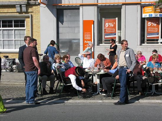Ein gleißender Sonnenschein verzauberte das Wochenende in Poperinge für die Delegierten des Marktes, seine Musiker und Schützen und die vielen treuen Begleiter, sowie Freunde der Partnerstadt. Der Höhepunkt, der Hopfenfestzug am Sonntag durch die Straßen, war so an Farbenfreudigkeit, Darstellkunst und Lebenslust nicht zu überbieten. Aus ihm ergaben sich für unseren Festzug in zwei Jahren wieder viele kleine und große Anregungen. In der Tat ist er noch größer, theatralischer als der doch wirklich stattliche Wolnzacher Historische Festzug. Aber es ging auch um die Straßen, ihre Dekoration mit Hopfenreben und anderen Details wie kleinen „Fußabdrücken“ des Hopfens auf dem Trottoir. Wie viele Hopfenprodukte gibt es in den Geschäften! Noch mehr imponierte das riesige Angebot an Hotels und Restaurants, ihre ausgezeichnete Qualität von Standard bis zu Sterne-Menüs. Im Tourismus ist Poperinge nicht nur doppelt so groß, sondern zwanzigfach. Auch die übrigen Gewerbe vermeldeten keine Sorgen. Poperinge steht gut da, ist mit Bürgermeister Christoph Dejaegher sehr zufrieden, den nun mit Jens Machold eine echte Freundschaft verbindet. Nächstes Jahr will Dejaegher mit Familie zum Oktoberfest kommen – außer der Reihe, ganz privat. Aber als Freund.
