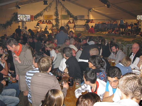 Beinahe wäre dies in Chaos untergegangen. Gegen halb eins standen so viele Neugierige auf der Zugangsrampe zum Bierzelt, dass sie zusammenbrach. Verletzt wurde niemand. Aber die Nacht hatte ihre Sensation schon vor der Wahl. Die rund 2.000 Gäste mussten herausgehoben werden bzw. herausspringen. Sicherlich fand sich ein Kavalier für Ex-Miss-Belgien…..