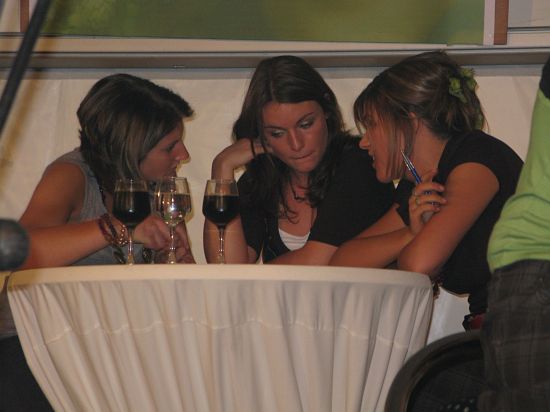Interessant ist besonders die Vorbereitung und Durchführung der Wahl. Die Mädchen nehmen mehrere Werbespots auf, die dann über einen großen Bildschirm im Zelt eingespielt werden. Überhaupt geht es mächtig laut zu. Nicht nur von Seiten der anfeuernden Zuschauer. Die Phonzahl der Mikros ist mächtig. Und nach der Wahl gab es heuer eine Disco bis morgens um 6 Uhr im Bierzelt. Die alpenländischen Blasmusiker räumten dazu die Bühne.
