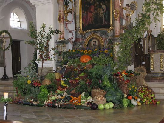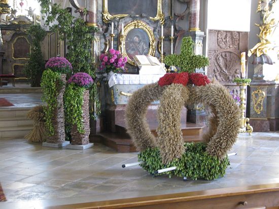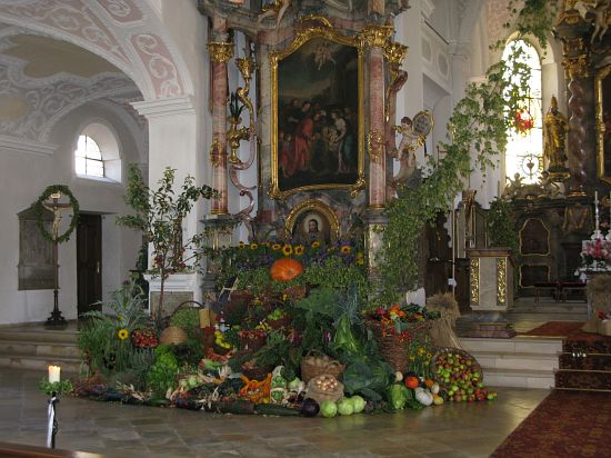 Der Wolnzacher Gartenbauverein schmückte großzügig unter anderem den Seitenaltar der Wolnzacher Pfarrkirche für das letzte Wochenende. Wegen der Altötting-Wahlfahrt hält die Wolnzacher Pfarrei das Erntedankfest eine Woche früher ab.