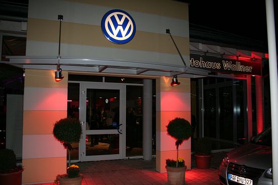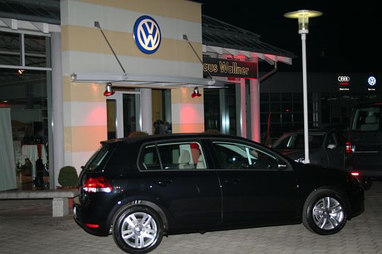 Am Freitag abend präsentierte das Autohaus Wallner im Rahmen einer kleinen Feier den neuen Golf von VW. Zahlreiche Kunden, Freunde und Gäste waren geladen. Das Gebäude wurde angestrahlt und auch die Bäume brachten ein wunderschönes Ambiente in das Autohaus Wallner. Es war ein großes Büffet von der Metzgerei Breitner aus Niederlauterbach aufgebaut, an dem sich die zahlreichen Gäste bedienen konnten. Natürlich durfte auch die Musik nicht fehlen und so spielten die Abstauber aus Wolnzach zum gemütlichen und informativen Abend auf. Zu sehen waren neben dem neuen Golf auch noch die beiden neuen Modelle Passat und Scirocco. Auf zum Autohaus Wallner zum Anschauen und Probe fahren. Es lohnt sich.