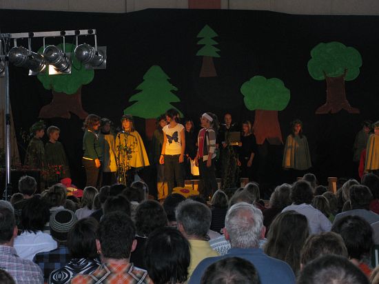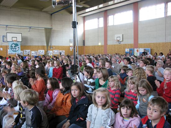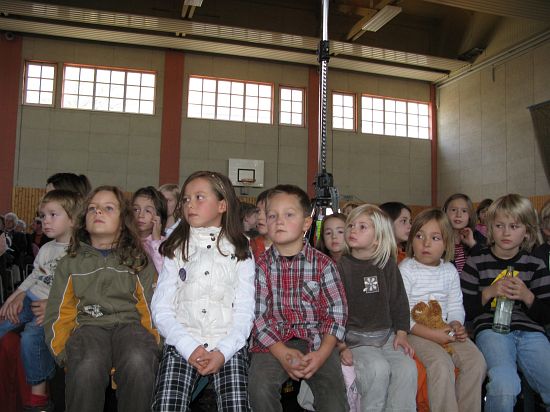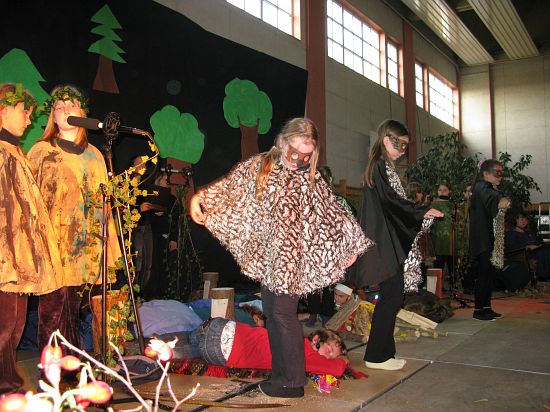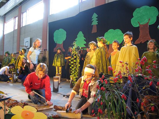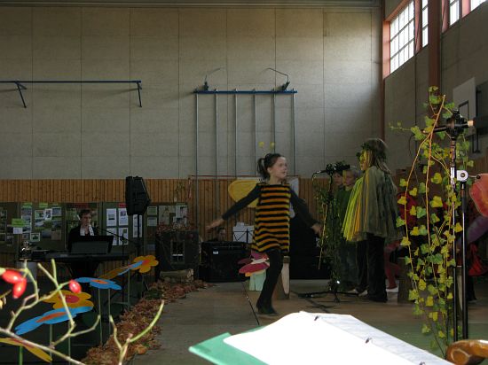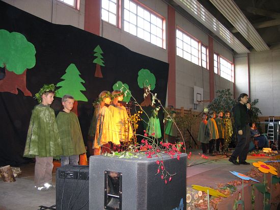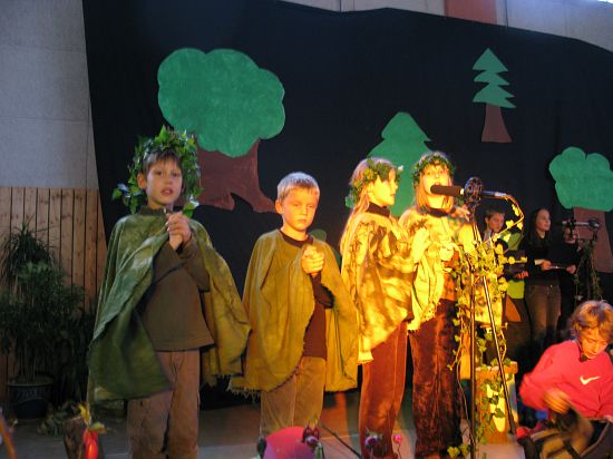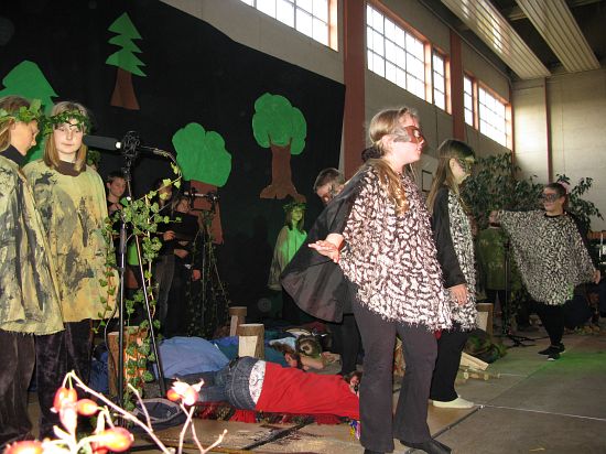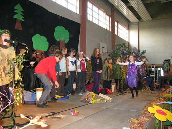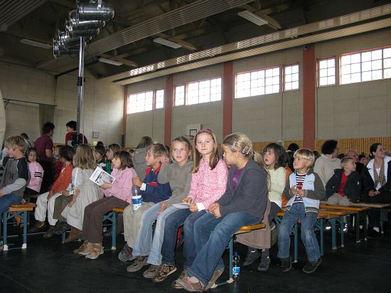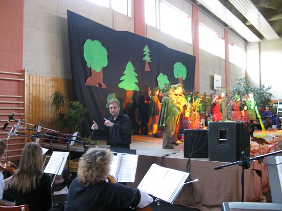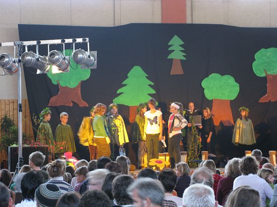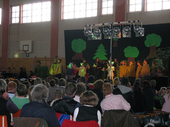Christl Seibold hielt, im wahrsten Sinne auch als Vorleserin auf der Bühne, das Buch in der Hand, und Johannes Seibold spielte nicht nur in der Band, sondern hatte auch die anspruchsvollen, aber dennoch eingängigen Lieder zu einer Produktion beigetragen, die die Turnhalle der Grundschule in einen Konzertsaal verwandelte, der nicht nur tolle Musik, sondern auch eine perfekte, weil so liebevoll gestaltete Bühnenshow lieferte, die alle großen und kleinen Zuschauer und Zuhörer zu Beifallsstürmen hinriss.