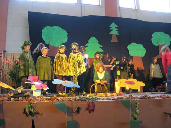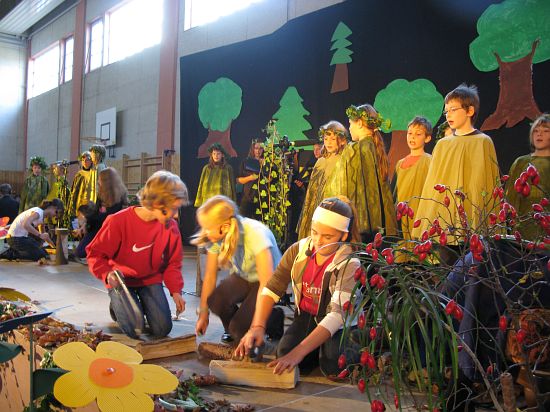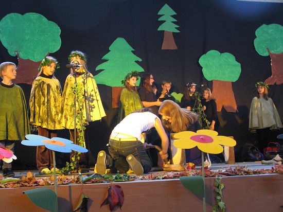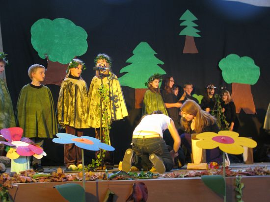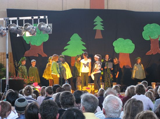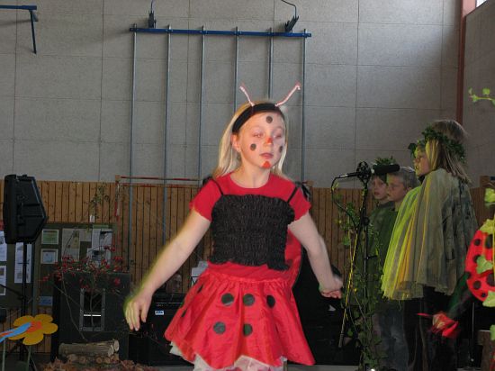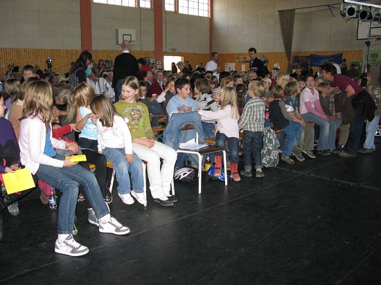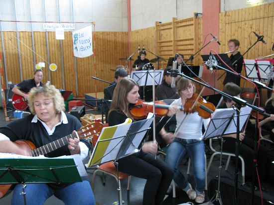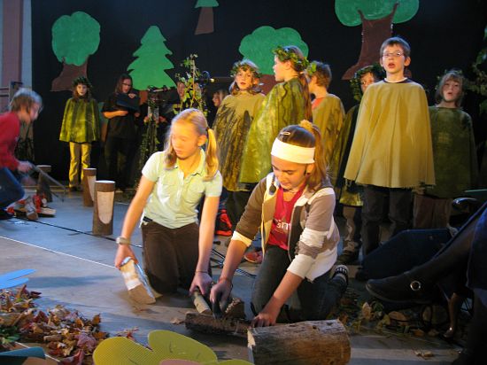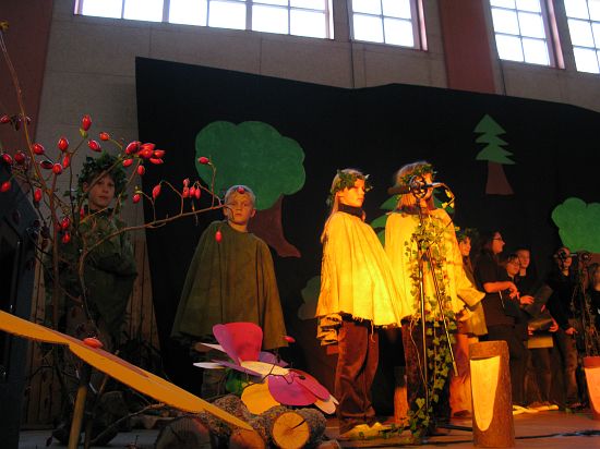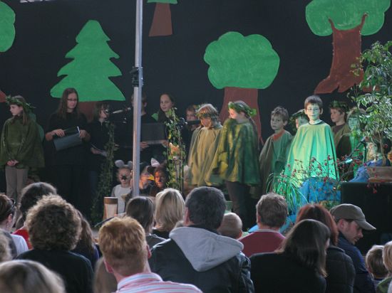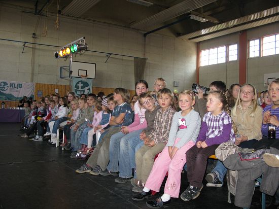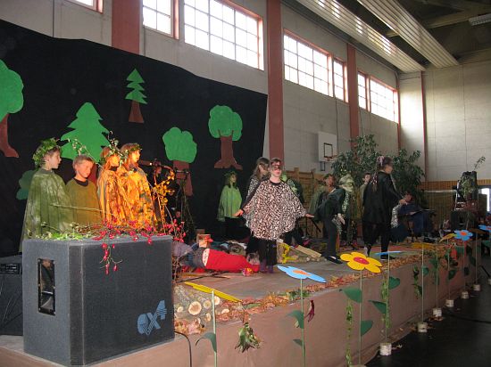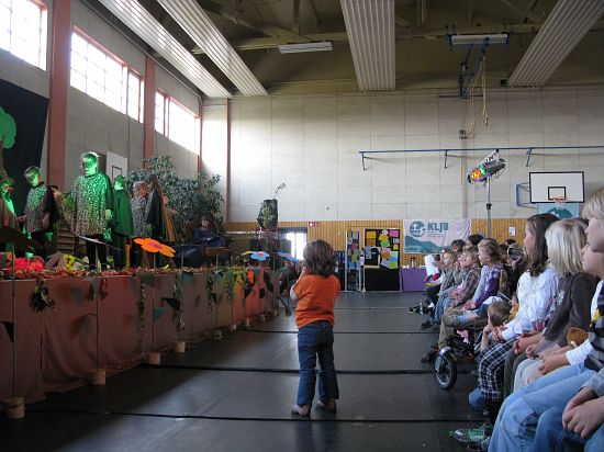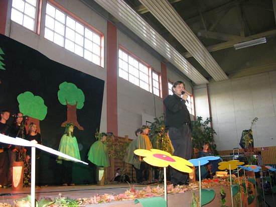 Christl Seibold hielt, im wahrsten Sinne auch als Vorleserin auf der Bühne, das Buch in der Hand, und Johannes Seibold spielte nicht nur in der Band, sondern hatte auch die anspruchsvollen, aber dennoch eingängigen Lieder zu einer Produktion beigetragen, die die Turnhalle der Grundschule in einen Konzertsaal verwandelte, der nicht nur tolle Musik, sondern auch eine perfekte, weil so liebevoll gestaltete Bühnenshow lieferte, die alle großen und kleinen Zuschauer und Zuhörer zu Beifallsstürmen hinriss.
